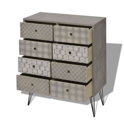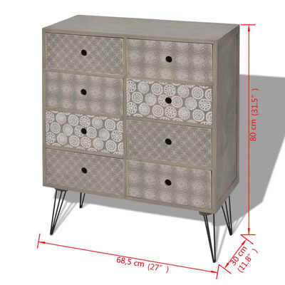 Este aparador com 8 gavetas tem um design retro com padrões decorativos elegantes. O aparador será uma adição prática, bem como altamente decorativa, para o seu quarto, sala de estar ou sala de espera.
