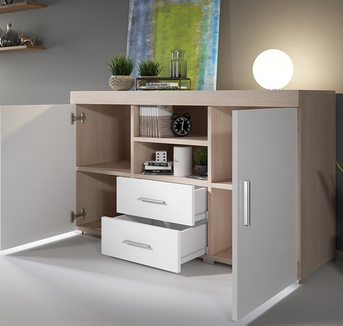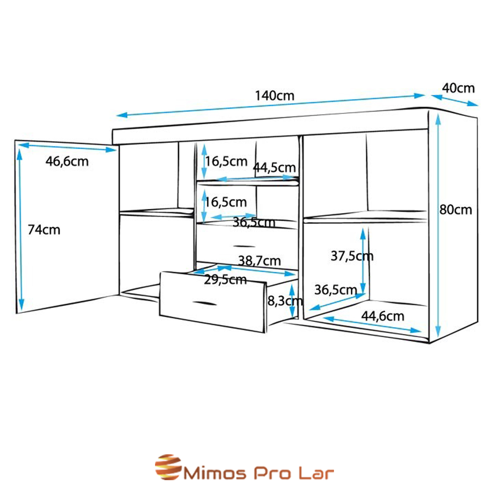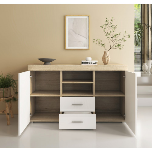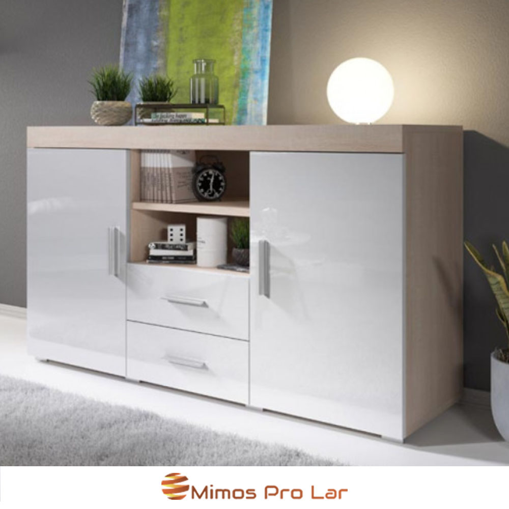 - Aparador com 2 portas e 2 gavetas que será muito útil para guardar todos os seus objetos volumosos e recuperar espaço na sua sala de jantar.