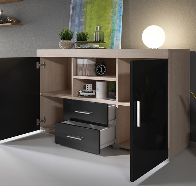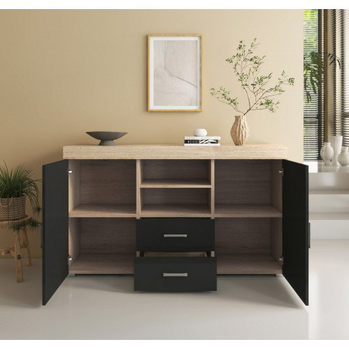 - Aparador com 2 portas e 2 gavetas que será muito útil para guardar todos os seus objetos volumosos e recuperar espaço na sua sala de jantar.
