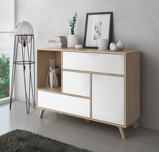 Um aparador com linhas simples mas moderno para decorar o seu hall de entrada ou sala.