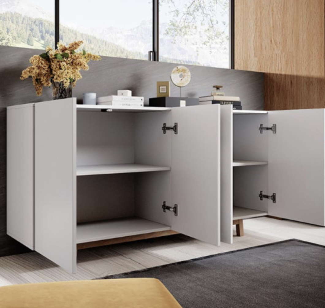 Um aparador de linhas simples e modernas ideal para decorar a sua sala.
