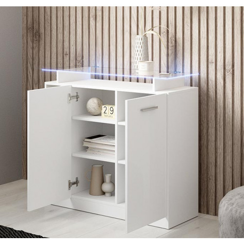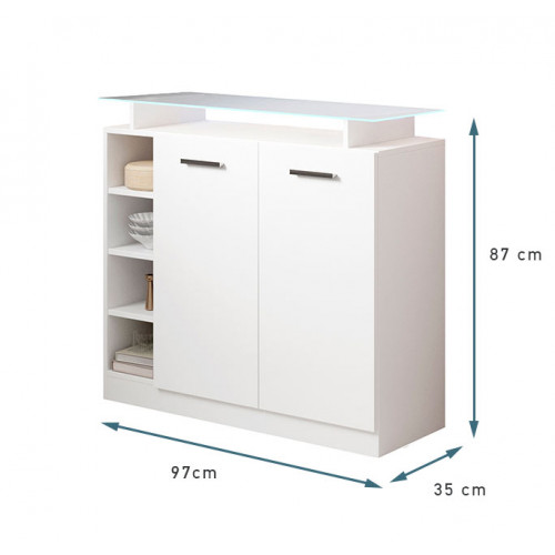 - Sua prateleira superior de vidro, juntamente com duas luzes LED, criarão o ambiente ideal para receber seus visitantes.