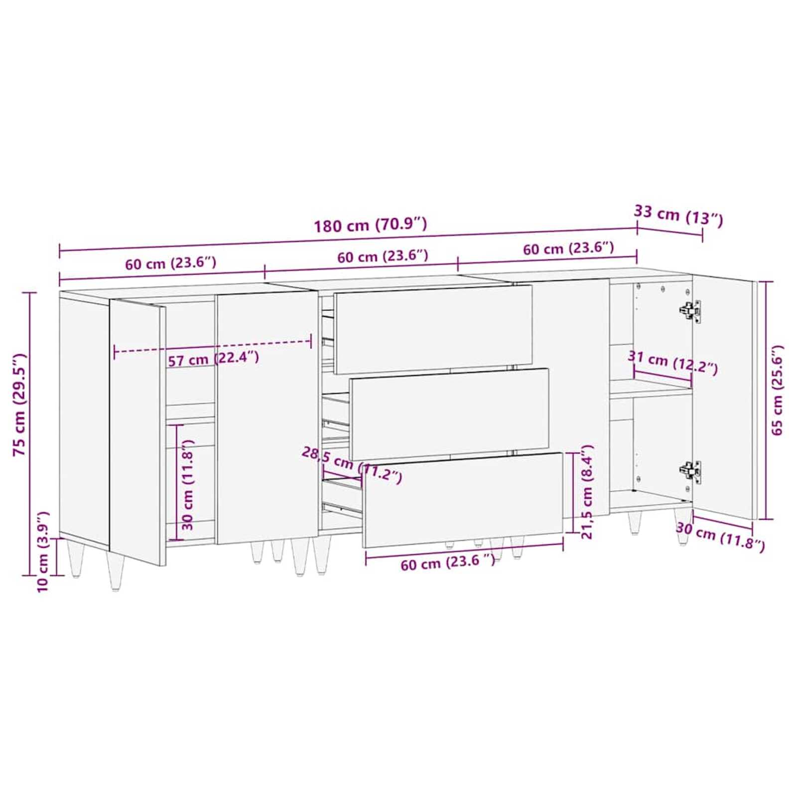 - Opções de Armazenamento Amplas: Tem gavetas tradicionais e portas com dobradiças, então você tem várias opções pra guardar suas coisas. Esse design comporta de tudo, desde louças e roupas de mesa até itens decorativos, mantendo o espaço organizado e estiloso.