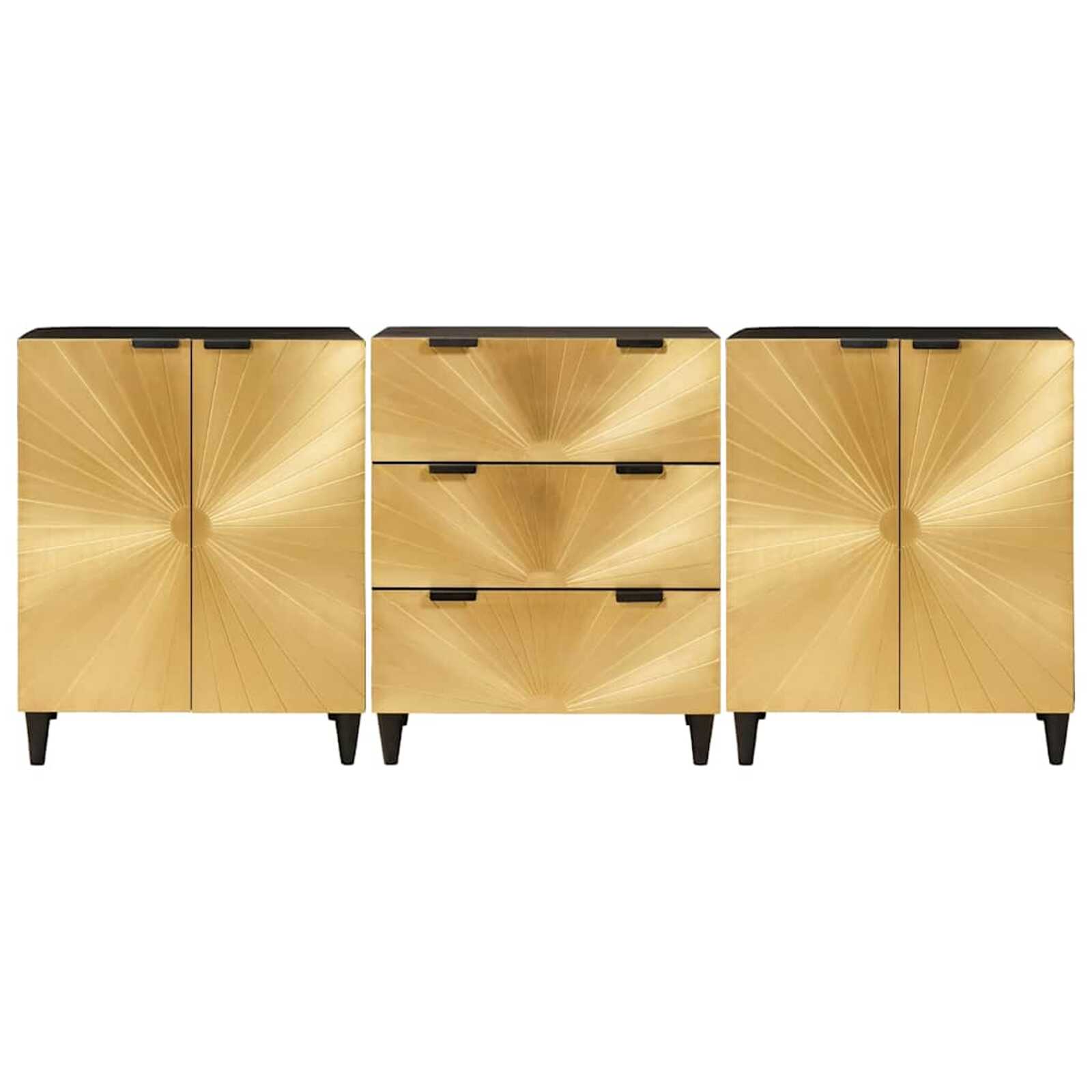 Esse Buffet de Madeira Sólida é a combinação perfeita de design e praticidade, ideal para lares modernos. Com um acabamento chique em preto e dourado, junta elegância e funcionalidade, oferecendo bastante espaço pra guardar suas coisas essenciais de jantar ou da sala.