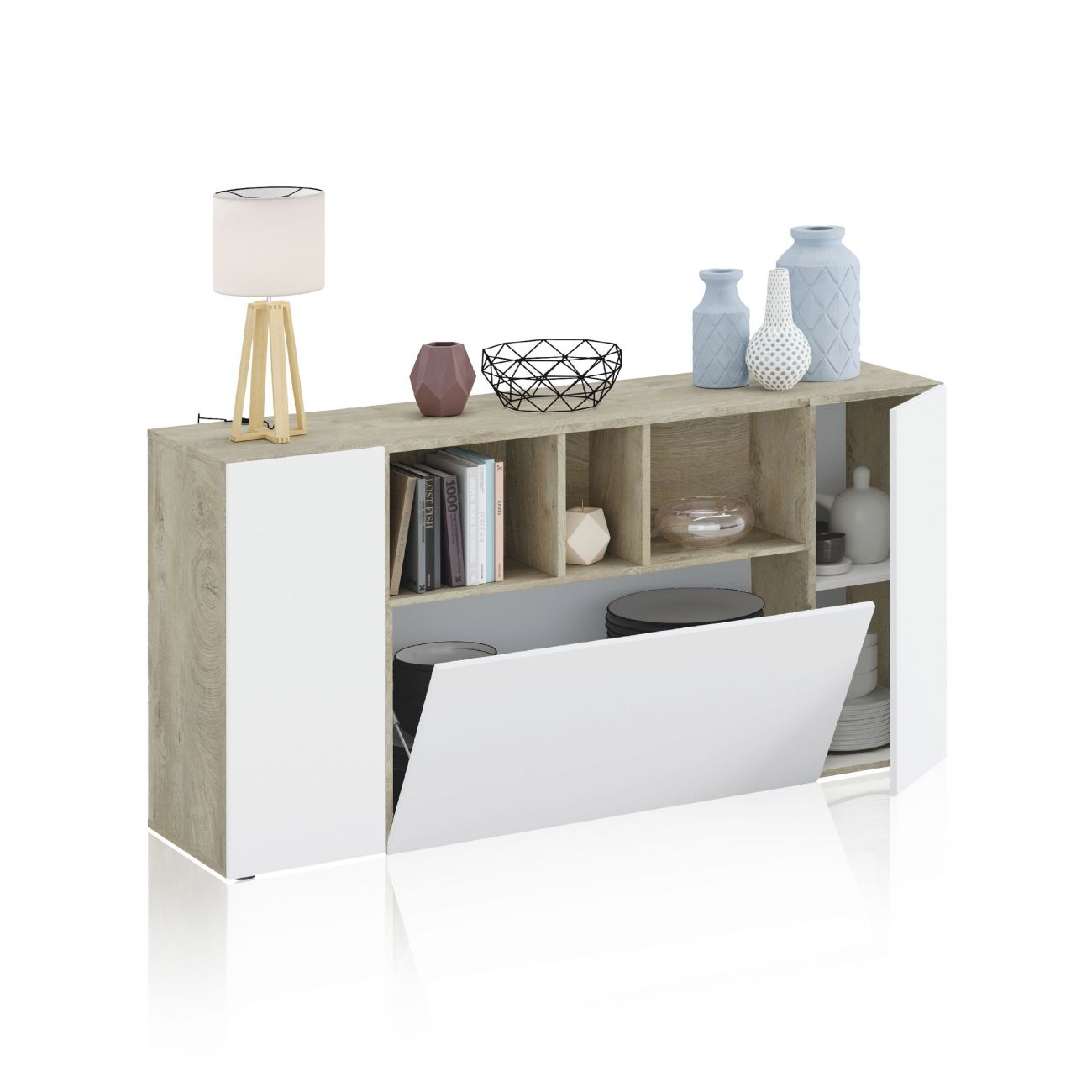 O aparador Ronny é uma bela peça de mobiliário para colocar, por exemplo, no nosso hall de entrada ou na sala de jantar e oferece-nos muito espaço de arrumação.