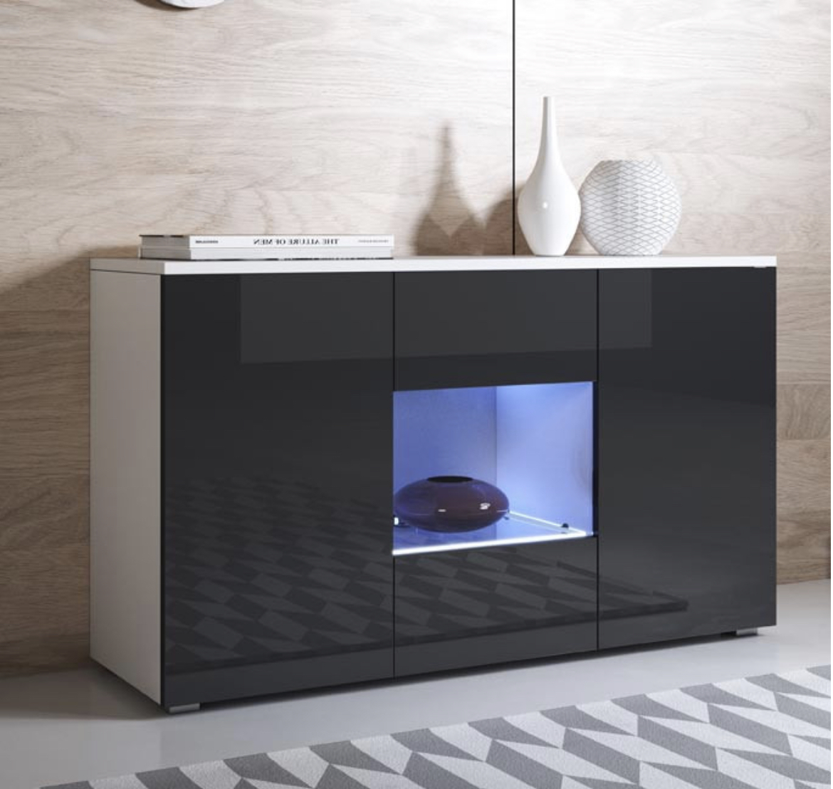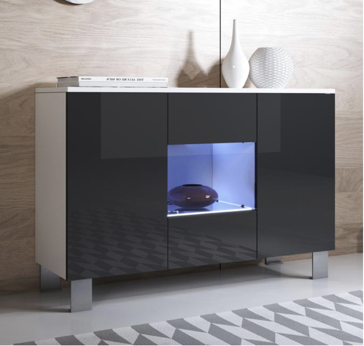 Aparador de design elegante e moderno. Todo o móvel tem um acabamento brilhante que com certeza se adaptará perfeitamente à decoração da sua casa. O aparador oferece um amplo espaço interno que permitirá organizar talheres, copos, toalhas de mesa, ...Na sua superfície você poderá colocar objetos decorativos que dão personalidade à sua sala de estar ou sala de jantar.