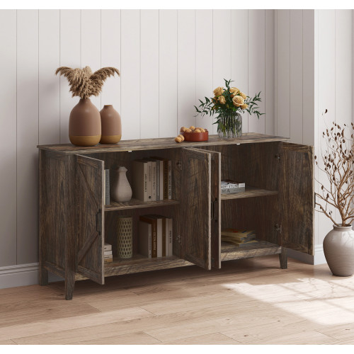 Este aparador rústico de 140 cm combina design tradicional com funcionalidade moderna, ideal para complementar salas de estar, salas de jantar ou corredores com um toque acolhedor e convidativo. Seu acabamento em melamina com efeito carvalho envelhecido e portas estilo celeiro com puxadores de metal preto adicionam personalidade e estilo a qualquer ambiente.