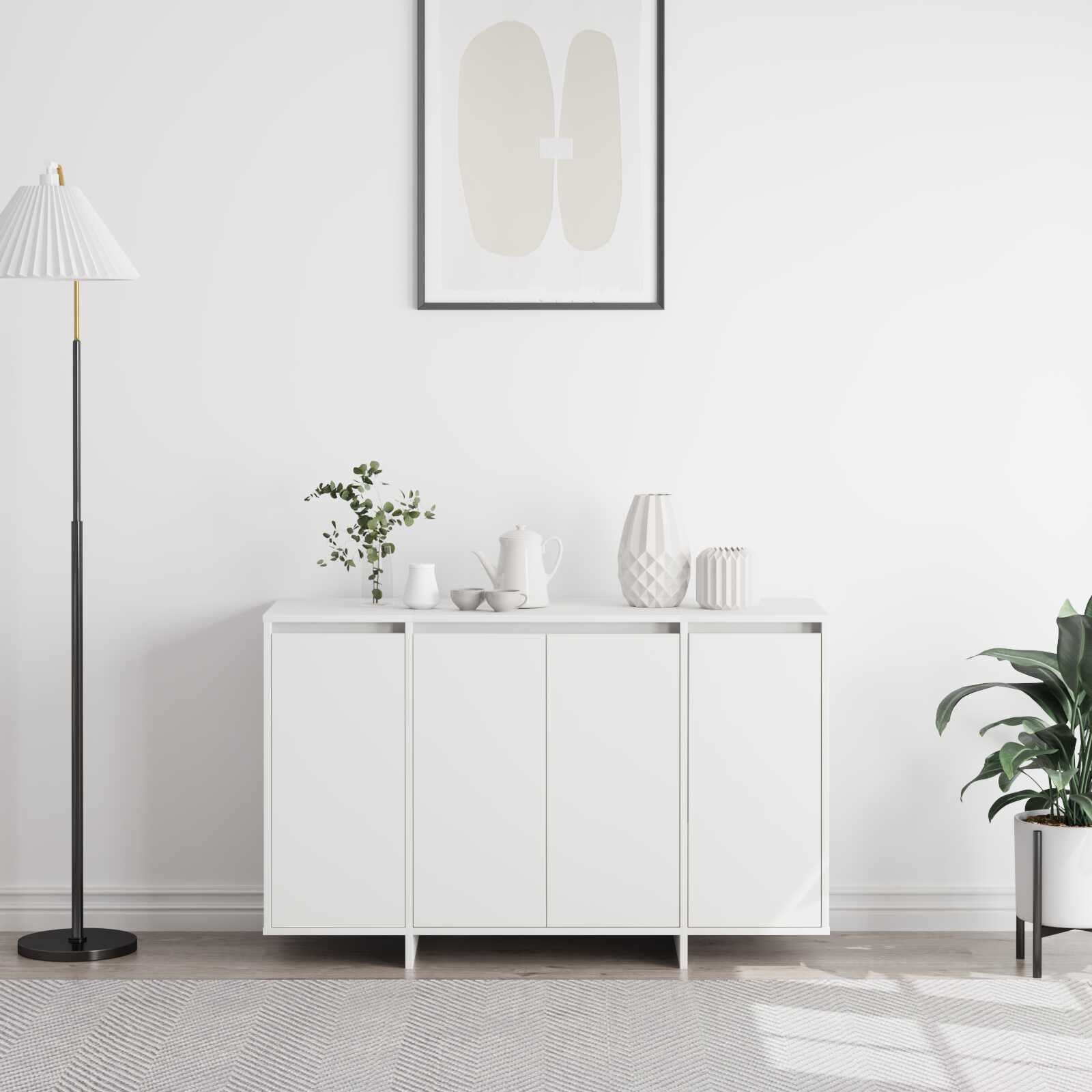 Esta unidade de armazenamento de buffet estilosa mistura facilmente praticidade com design. Feita de madeira engenheirada com um acabamento branco clássico, é bonita e funcional, perfeita para qualquer espaço de jantar ou estar. Encaixa-se bem em diferentes estilos de decoração, ao mesmo tempo que fornece soluções de armazenamento eficazes.