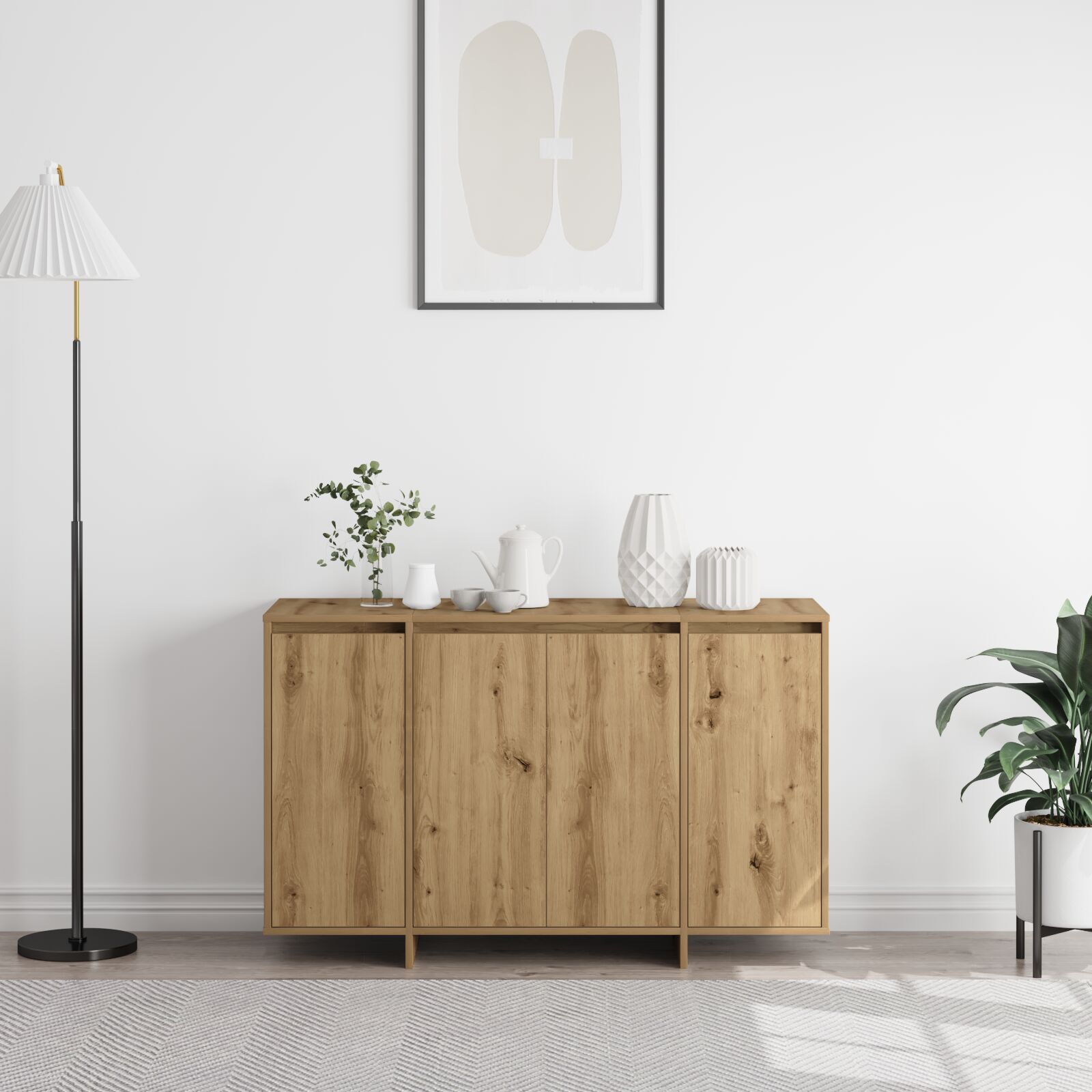 Esta unidade de armazenamento de buffet estilosa mistura facilmente praticidade com design. Feita de madeira engenheirada com um acabamento carvalho artesiano clássico, é bonita e funcional, perfeita para qualquer espaço de jantar ou estar. Encaixa-se bem em diferentes estilos de decoração, ao mesmo tempo que fornece soluções de armazenamento eficazes.
