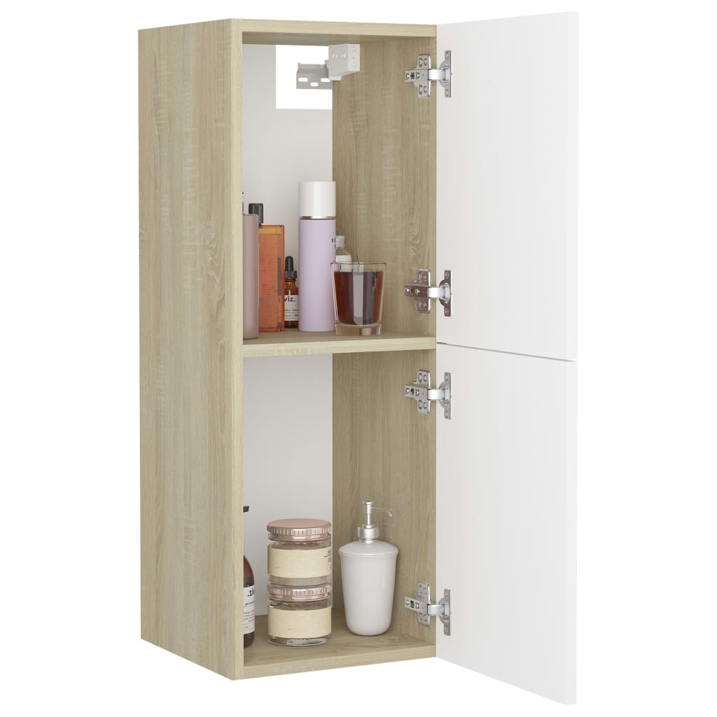 Com este armário para casa de banho pode criar um espaço de arrumação adicional na sua casa de banho, com um aspeto atraente e organizado. As linhas lisas e o design elegante fazem com que se funda perfeitamente na sua casa de banho.Este armário elegante é feito de contraplacado, tornando-o robusto e estável. O armário de parede tem um total de 2 compartimentos, oferecendo várias opções de arrumação e espaço extra para guardar artigos na sua casa de banho. O armário é fácil de limpar com um pano humedecido.