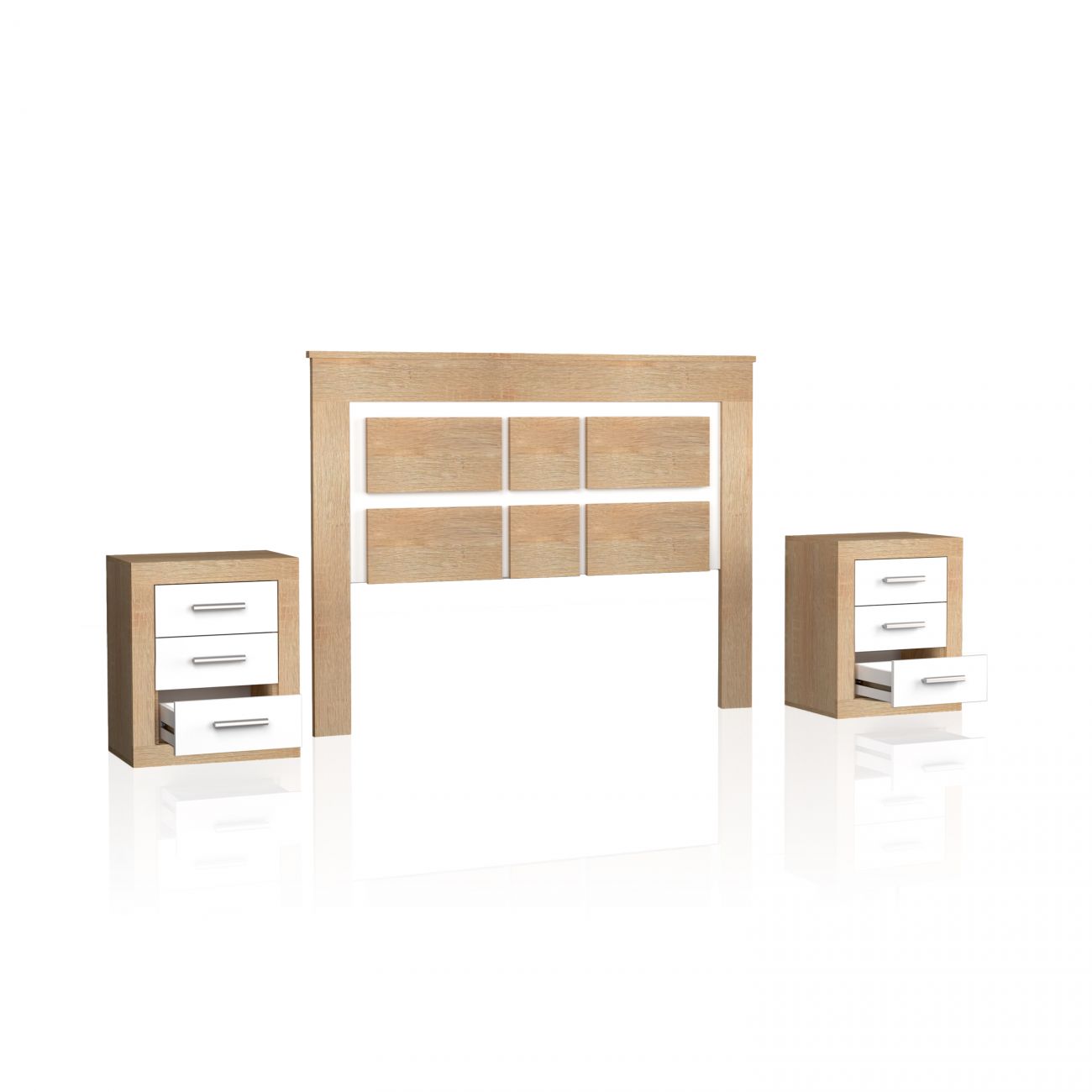 - Pack composto por uma cabeceira e duas mesas de cabeceira