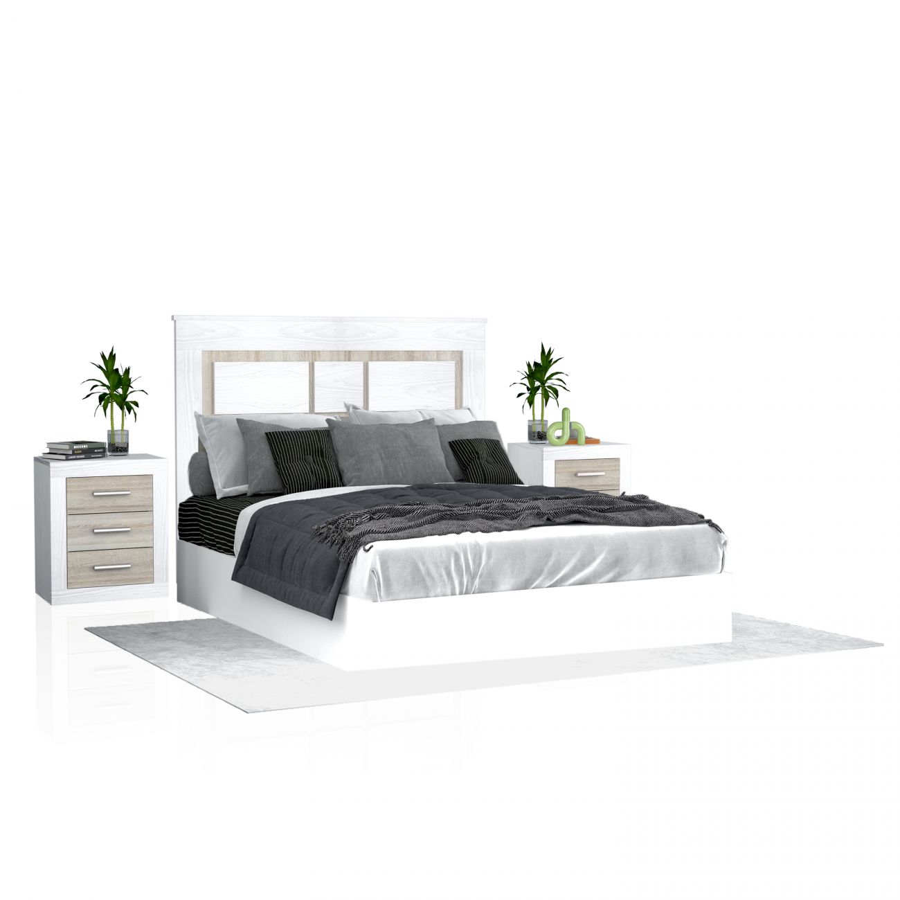 • Pack composto por uma cabeceira e duas mesas de cabeceira