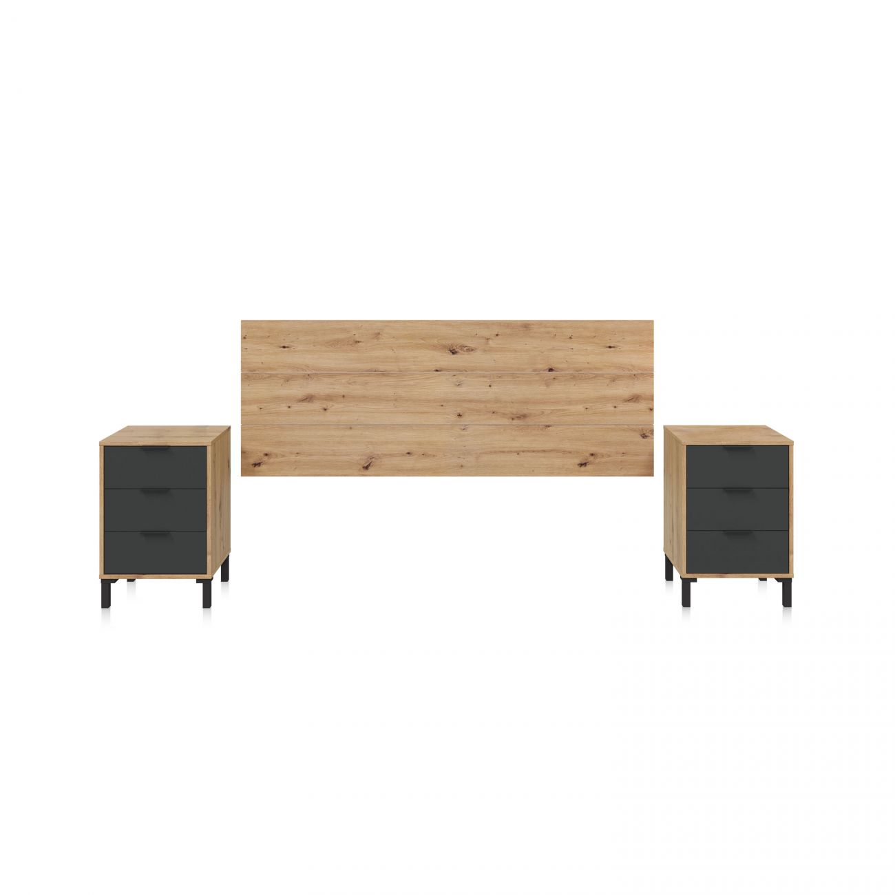 - A cabeceira apresenta-se com uma superfície lisa e larga e linhas horizontais limpas, dando uma sensação de espaço e calor visual ao espaço. A sua estrutura robusta e o acabamento em grão natural evocam um estilo contemporâneo com um toque de design industrial.