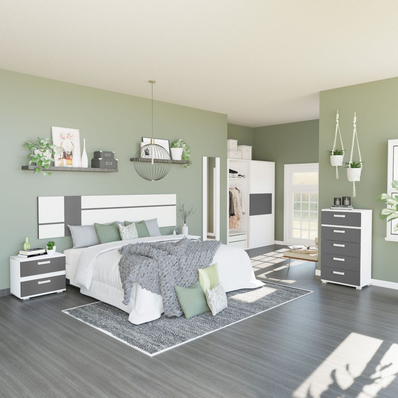 uma opção moderna e elegante para decorar o seu quarto. Com o seu design minimalista em branco e grafite com pormenores em relevo, dará estilo e personalidade ao seu quarto. Com LEDs para uma iluminação suave e relaxante.