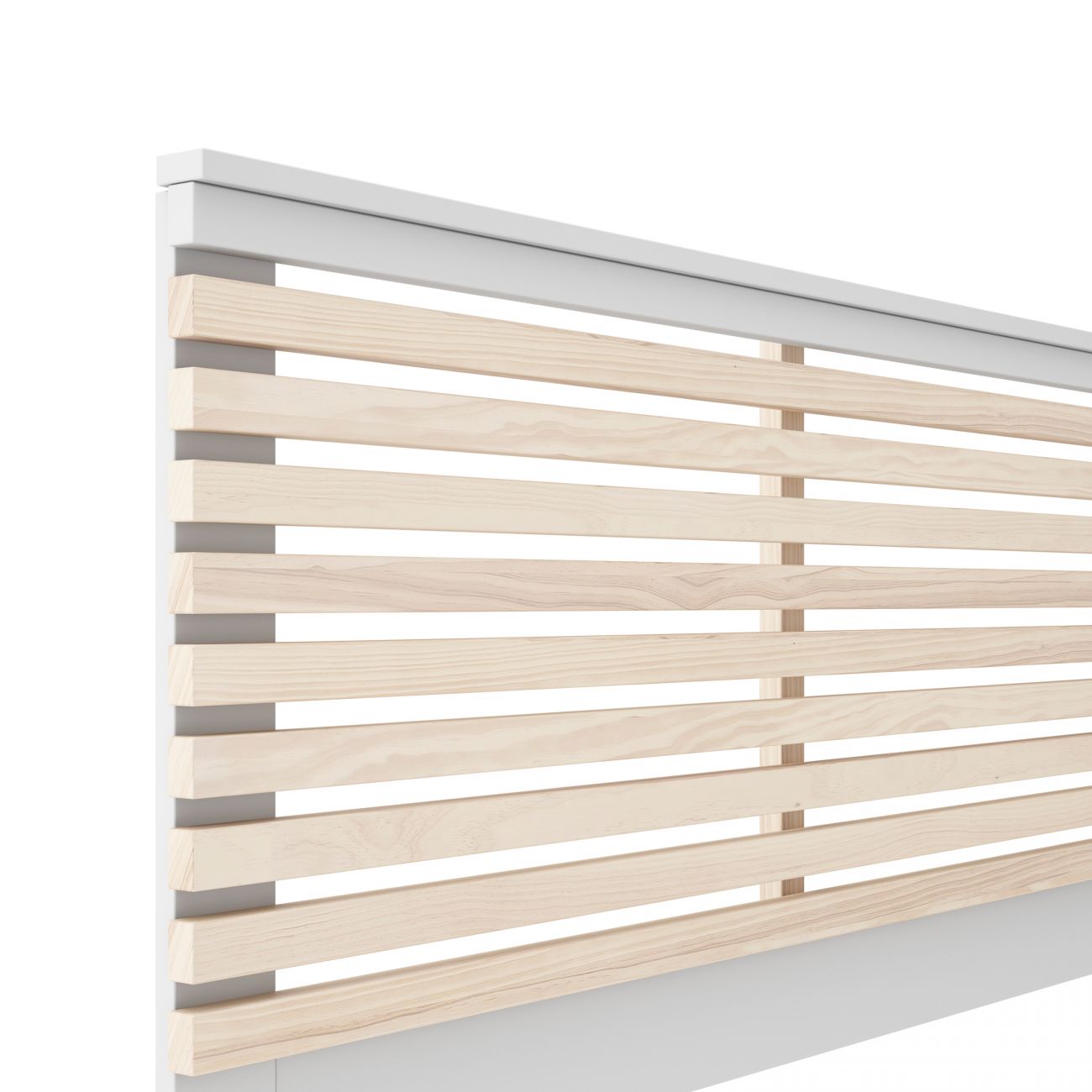 A cabeceira Mistica é uma peça decorativa funcional que redefine a estética do quarto. O seu design caracteriza-se por um conjunto de ripas horizontais distribuídas uniformemente, que proporcionam uma sensação de leveza visual e um estilo contemporâneo.