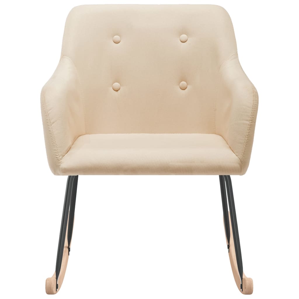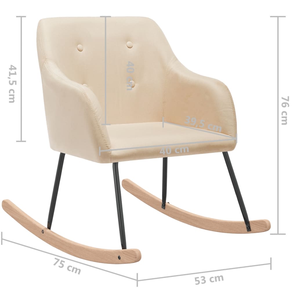 A cadeira de baloiço foi estofada com tecido macio e possui uma estrutura de metal. Com um design que apresenta barras de baloiço compridas, a cadeira não tomba facilmente. Suportada por pernas de metal, juntamente com as barras de baloiço em madeira, a cadeira de sala de estar é estável e durável.Esta cadeira pode ser utilizada na sua sala de estar, jardim, pátio e quaisquer outras divisões.