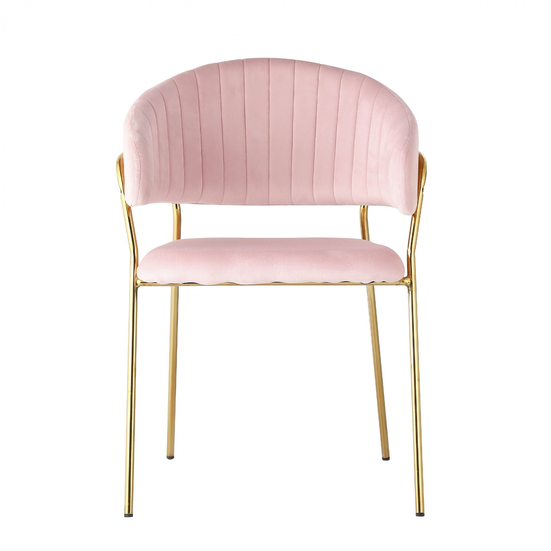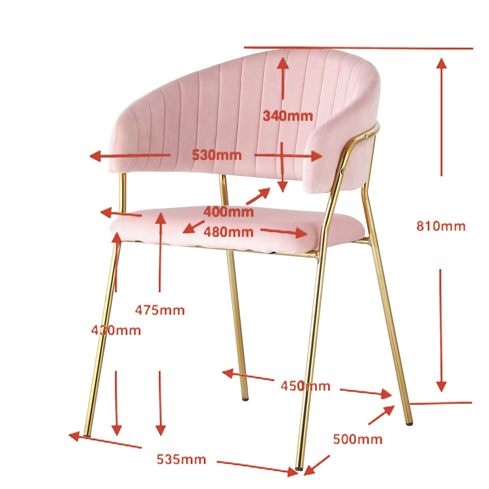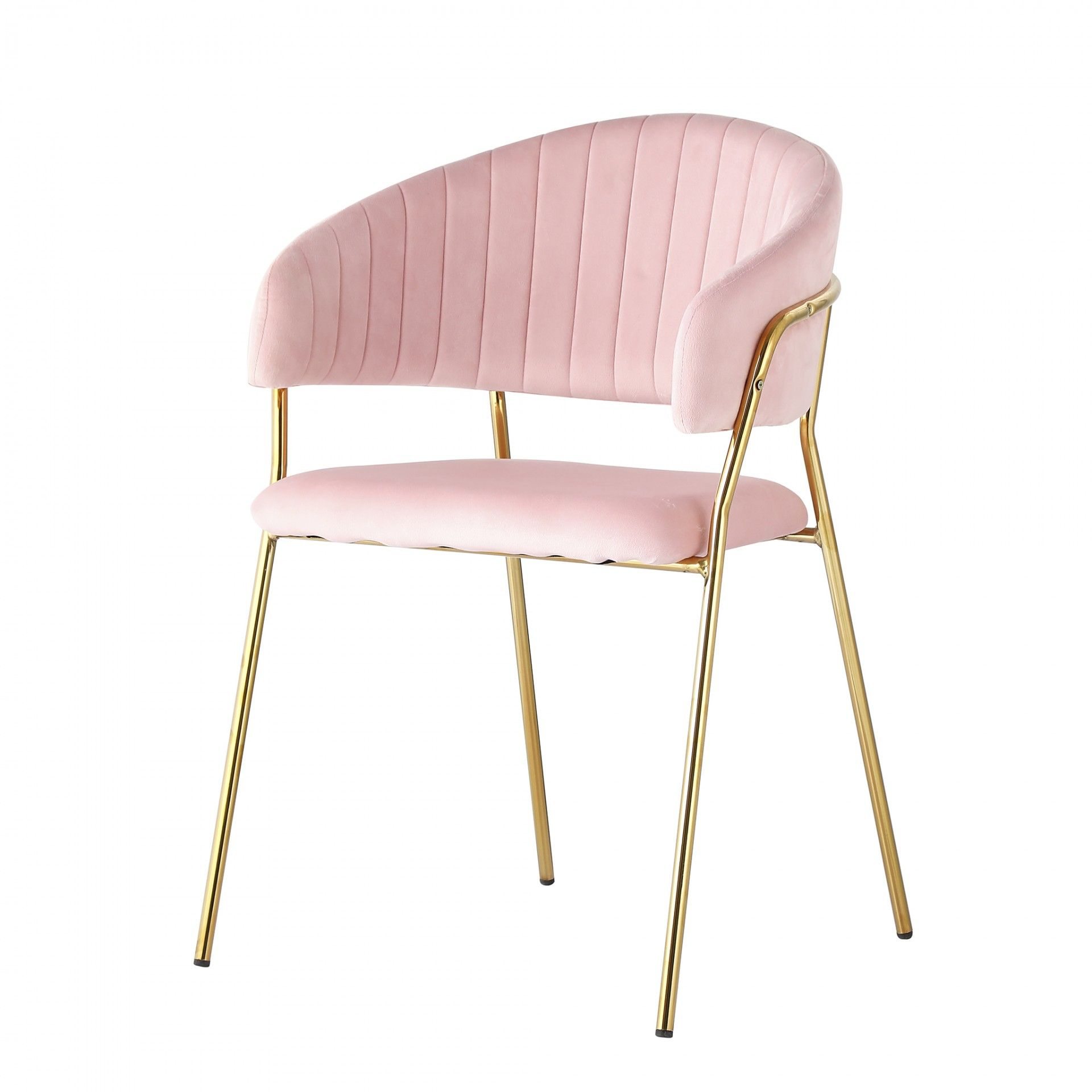 - Assento e encosto estofados e revestidos a tecido aveludado de cor rosa