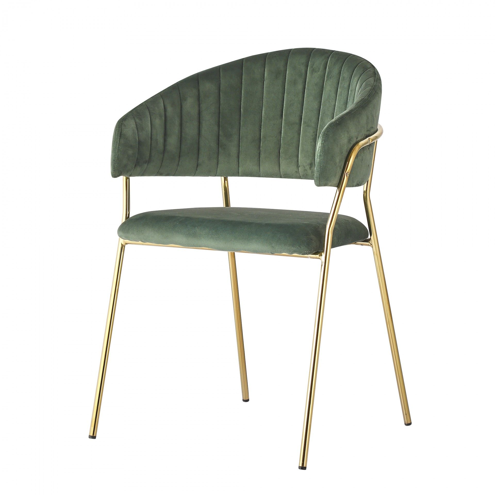 - Assento e encosto estofados e revestidos a tecido aveludado de cor verde