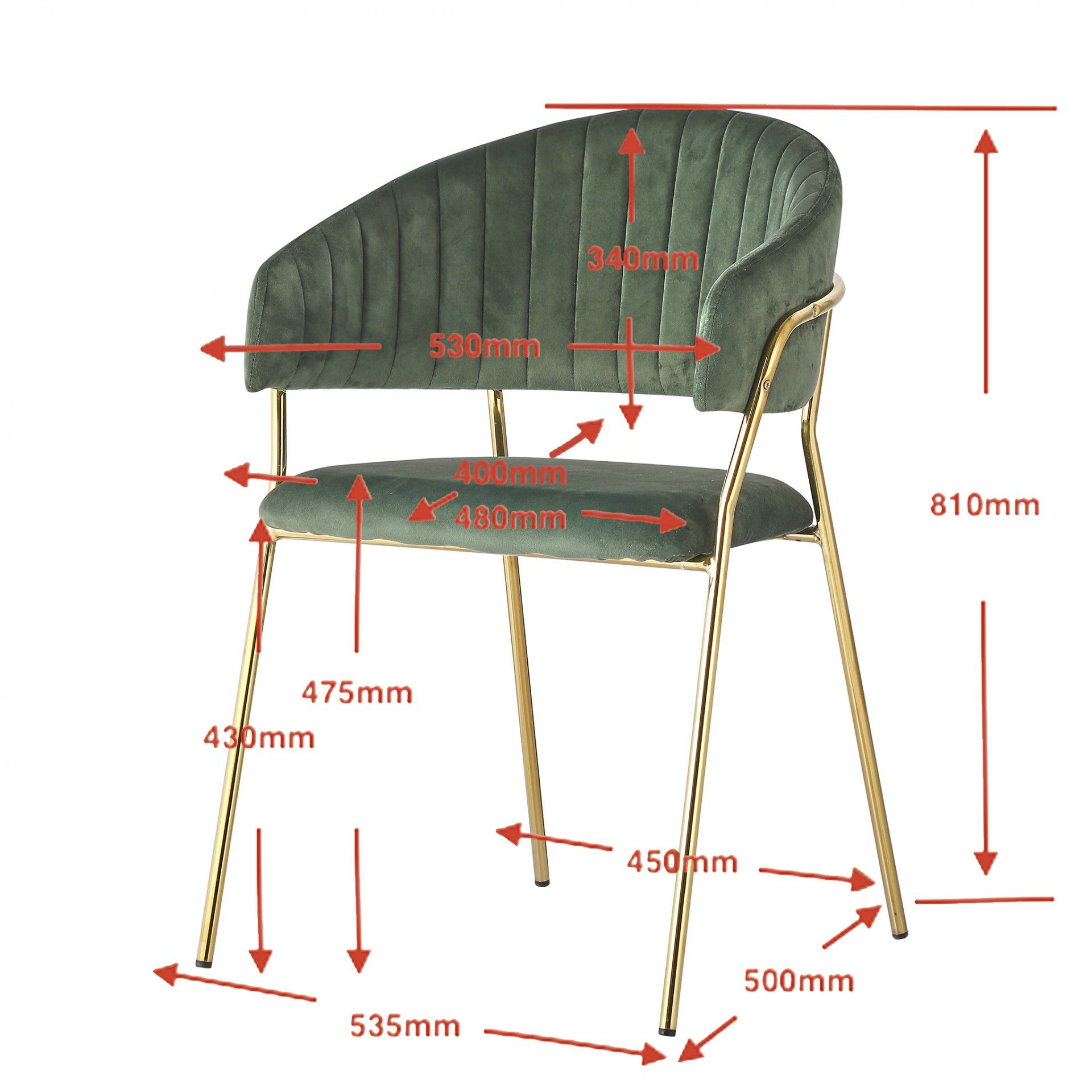 A Cadeira Cremona possui assento e encosto estofados e revestidos a veludo, sendo uma peça perfeita para vários ambientes: salas de estar, salas de jantar, quartos, salas de espera e escritórios. A sua estrutura metálica de cor dourada brilhante, o tecido aveludado macio e agradável ao toque e as costuras verticais no encosto conferem elegância e glamour.