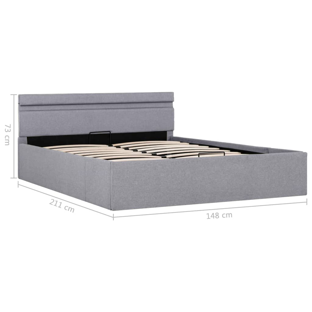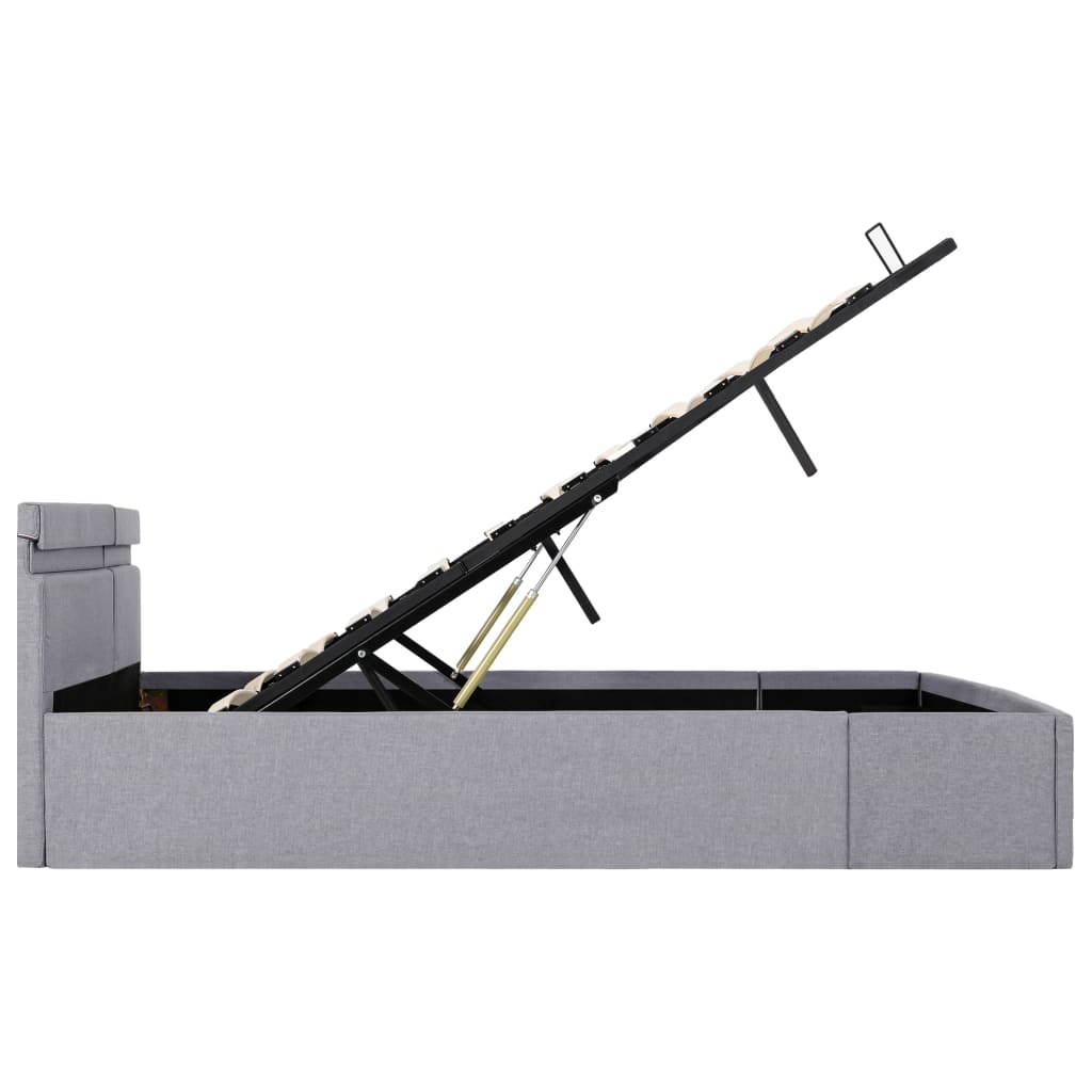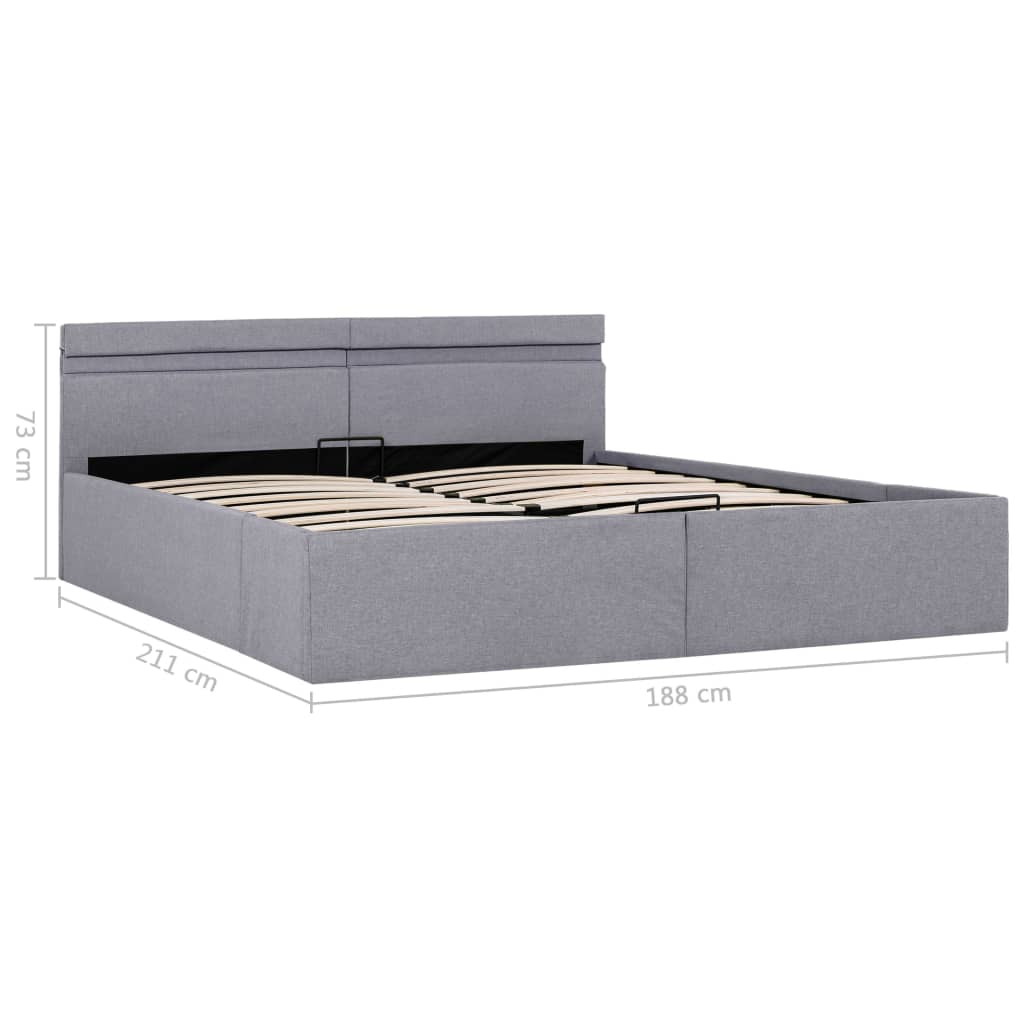 Adicione instantaneamente um toque moderno impressionante ao seu quarto com a nossa estrutura de cama hidráulica em tecido! Esta cama de solteiro é caracterizada por um design simples e elegante, além de uma construção sólida, pois é fabricada em MDF forte e robusto.estrutura de aço revestida a pó e as ripas de madeira compensada aumentam a robustez e a durabilidade da cama. Estofada em tecido durável, esta cama com arrumação é convidativa e fácil de manter. Este produto é fácil de montar.Poderá ainda ajustar convenientemente a potência, o brilho e as diferentes cores intermitentes da faixa de luzes LED com o controlo remoto de 24 teclas totalmente funcional e incluído, para criar um fantástico espetáculo de iluminação.