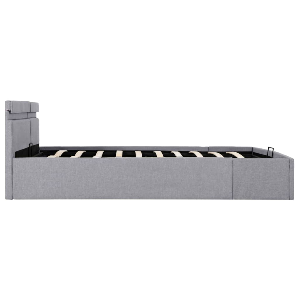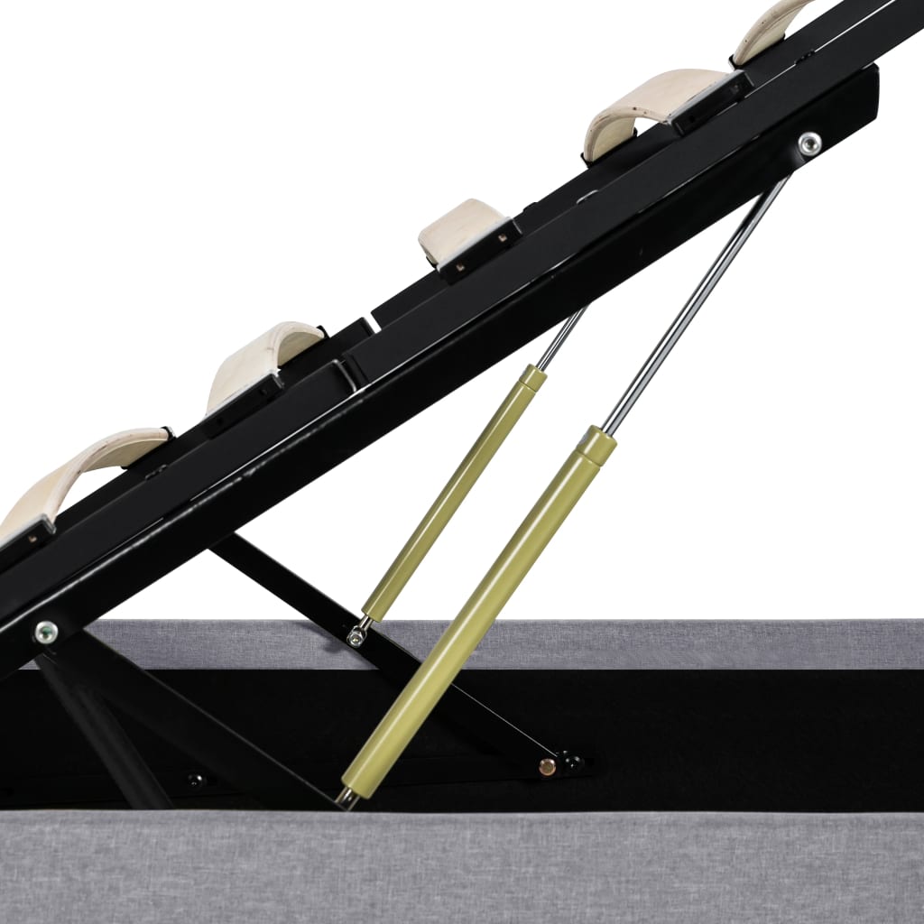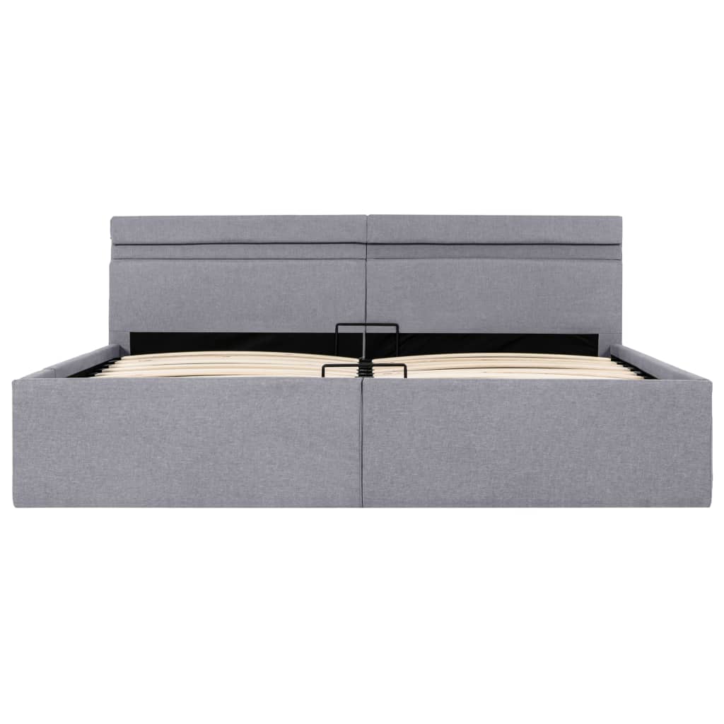 Adicione instantaneamente um toque moderno impressionante ao seu quarto com a nossa estrutura de cama hidráulica em tecido! Esta cama de solteiro é caracterizada por um design simples e elegante, além de uma construção sólida, pois é fabricada em MDF forte e robusto.estrutura de aço revestida a pó e as ripas de madeira compensada aumentam a robustez e a durabilidade da cama. Estofada em tecido durável, esta cama com arrumação é convidativa e fácil de manter. Este produto é fácil de montar.Poderá ainda ajustar convenientemente a potência, o brilho e as diferentes cores intermitentes da faixa de luzes LED com o controlo remoto de 24 teclas totalmente funcional e incluído, para criar um fantástico espetáculo de iluminação.