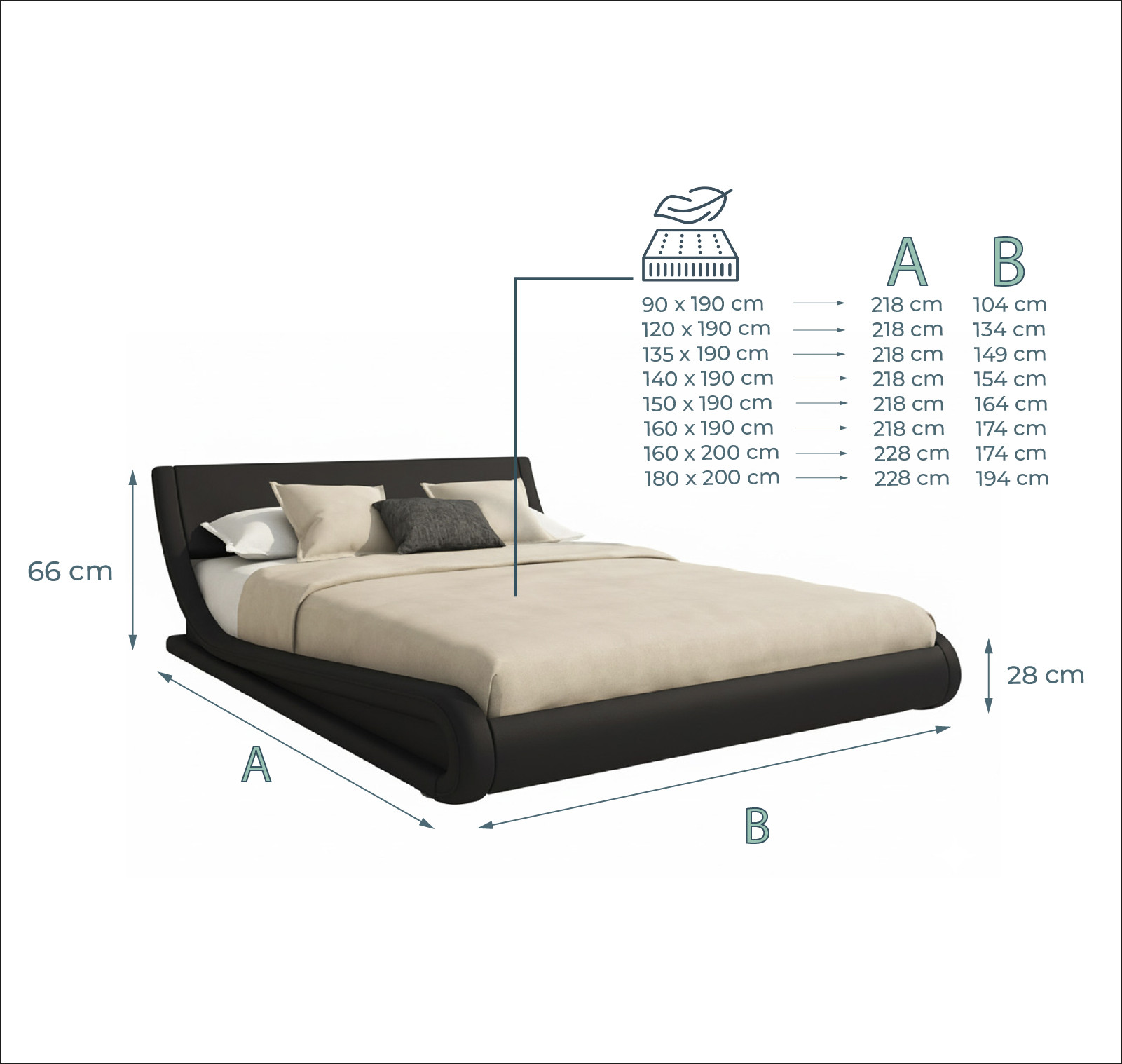 - Estrutura de madeira estofada em polipele de alta qualidade;