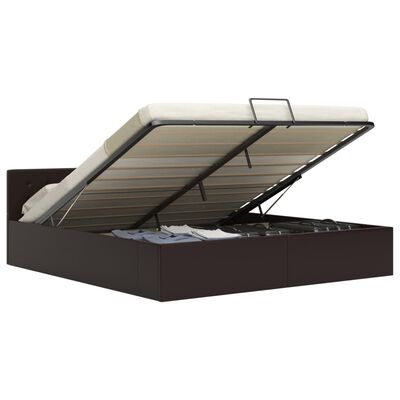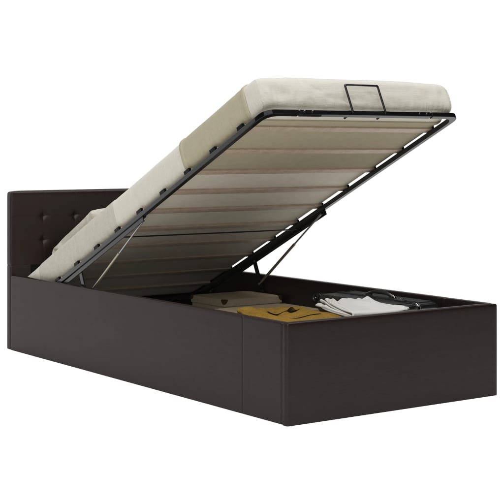A estrutura de aço revestido a pó e as ripas de madeira compensada aumentam a robustez e a durabilidade da cama. Estofada com couro artificial brilhante, esta cama com arrumação é convidativa e fácil de cuidar.