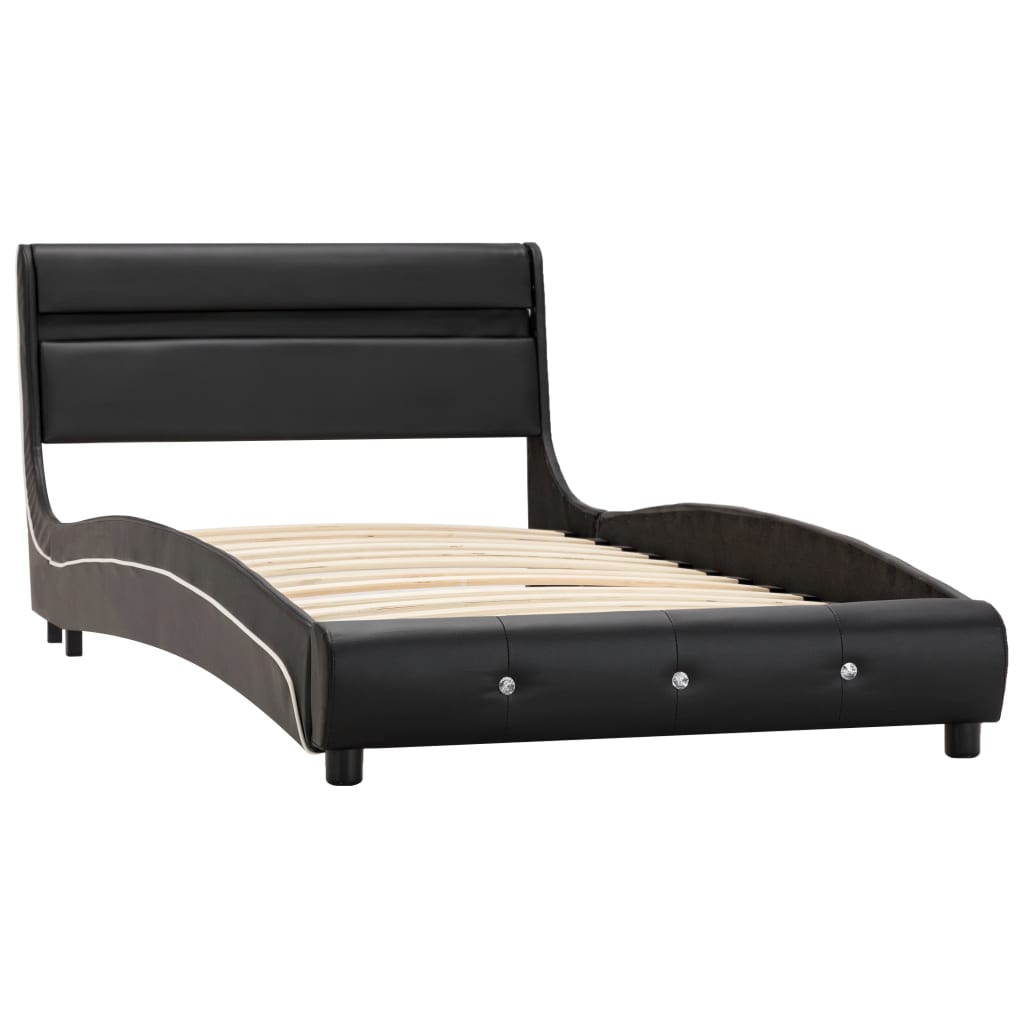 Adicione instantaneamente um toque moderno impressionante ao seu quarto com a nossa elegante estrutura de cama! Esta estrutura de cama com uma cabeceira confortável, irá tornar-se o ponto focal do seu quarto.om um design discreto mas sofisticado, a cama adicionará um toque de charme elegante à decoração do seu quarto. Feita em contraplacado e MDF, a estrutura de cama é extremamente resistente e durável. Estofada com couro artificial durável, a cama exala um aspeto convidativo. Graças à cabeceira macia, pode ver televisão ou ler um livro confortavelmente. A cama estofada é adequada para colchões de 90 x 200 cm. Pode ainda ajustar convenientemente a intensidade, o brilho e a intermitência das diferentes cores da faixa LED com o comando remoto incluído de 24 teclas totalmente funcional, para criar um deslumbrante espetáculo luminoso.