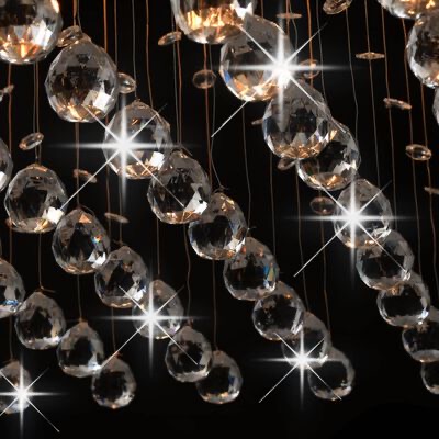 As gotículas transparentes e a superfície cromada semelhante a um espelho projetam uma bonita luz e garantem a iluminação ideal. Pode escolher instalar as lâmpadas G9 com várias cores claras, criando uma atmosfera de relaxamento e descanso.