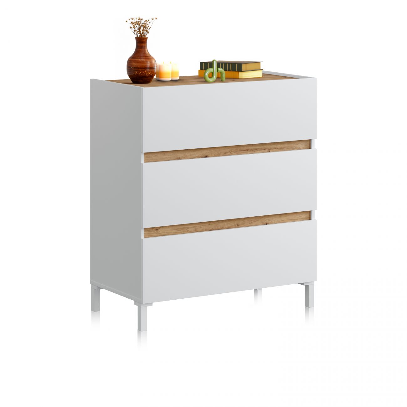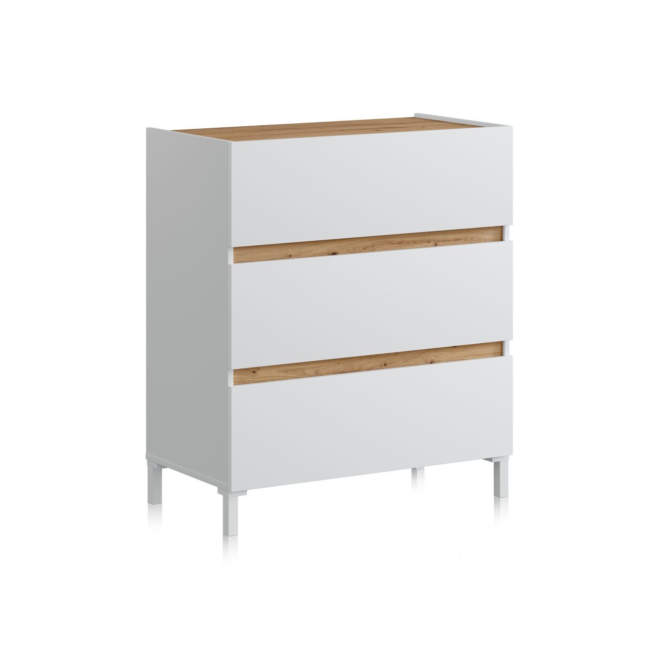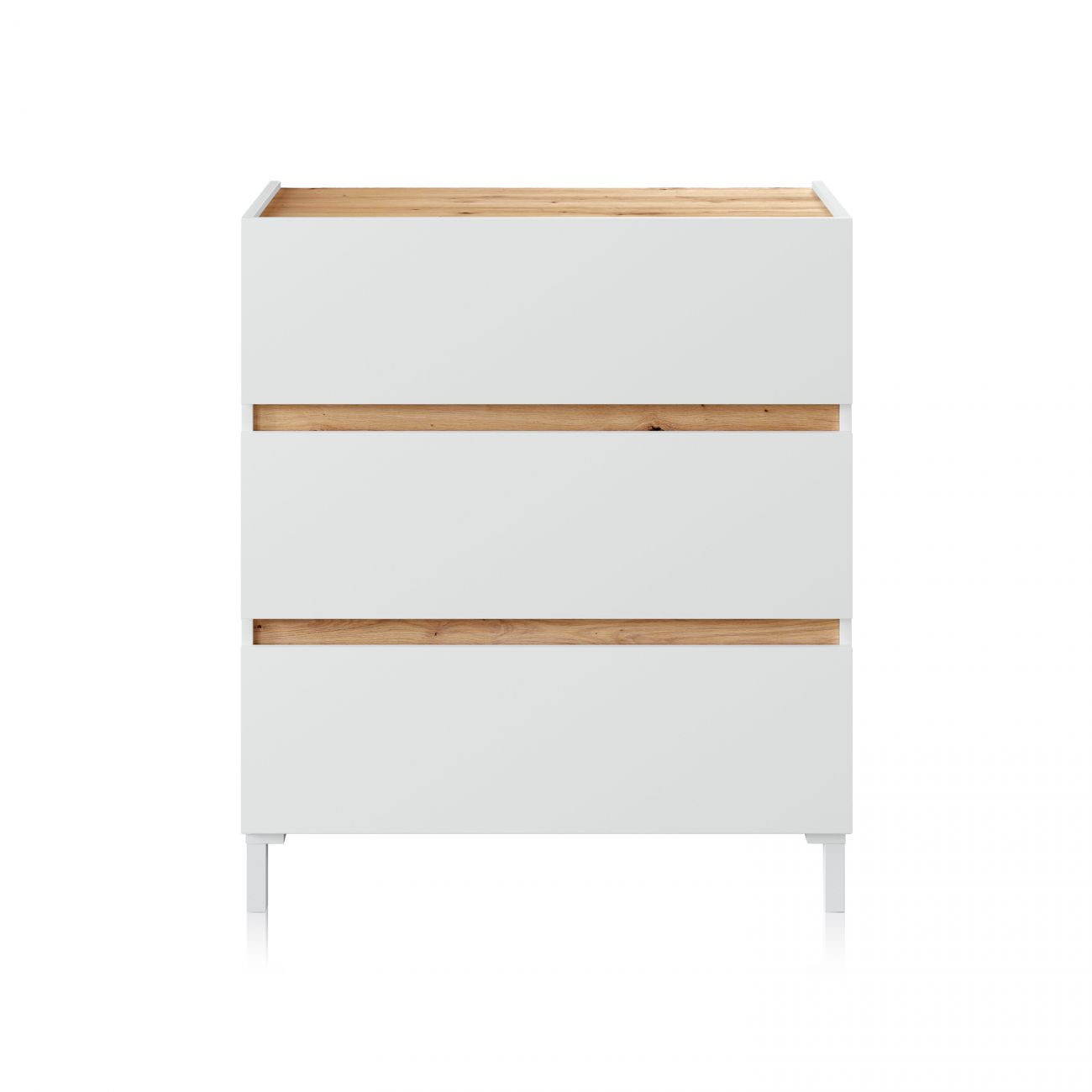 - A cómoda Bio tem três gavetas extraíveis espaçosas, o que a torna a escolha ideal para guardar roupa dobrada, acessórios ou quaisquer outros objectos que precise de ter à mão no seu quarto.