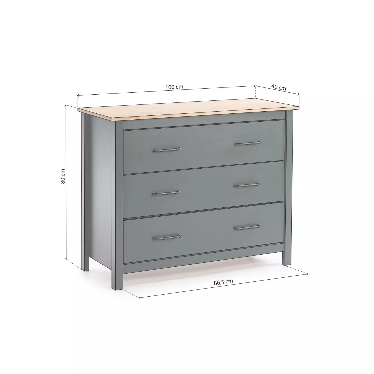 - Este móvel tem três gavetas grandes, perfeitas para guardar roupa, cobertores, acessórios ou qualquer outra coisa que precise de ter à mão no quarto. As gavetas estão equipadas com corrediças suaves e puxadores metálicos contemporâneos, tornando-as resistentes e fáceis de utilizar no dia a dia.