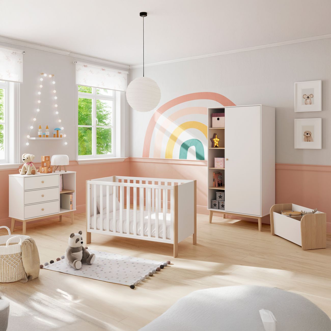 - Os puxadores arredondados e os acabamentos contrastantes conferem um toque quente e natural que valoriza o design geral do móvel. A sua estrutura robusta garante uma longa vida útil, concebida para acompanhar a criança em todas as fases do seu crescimento.