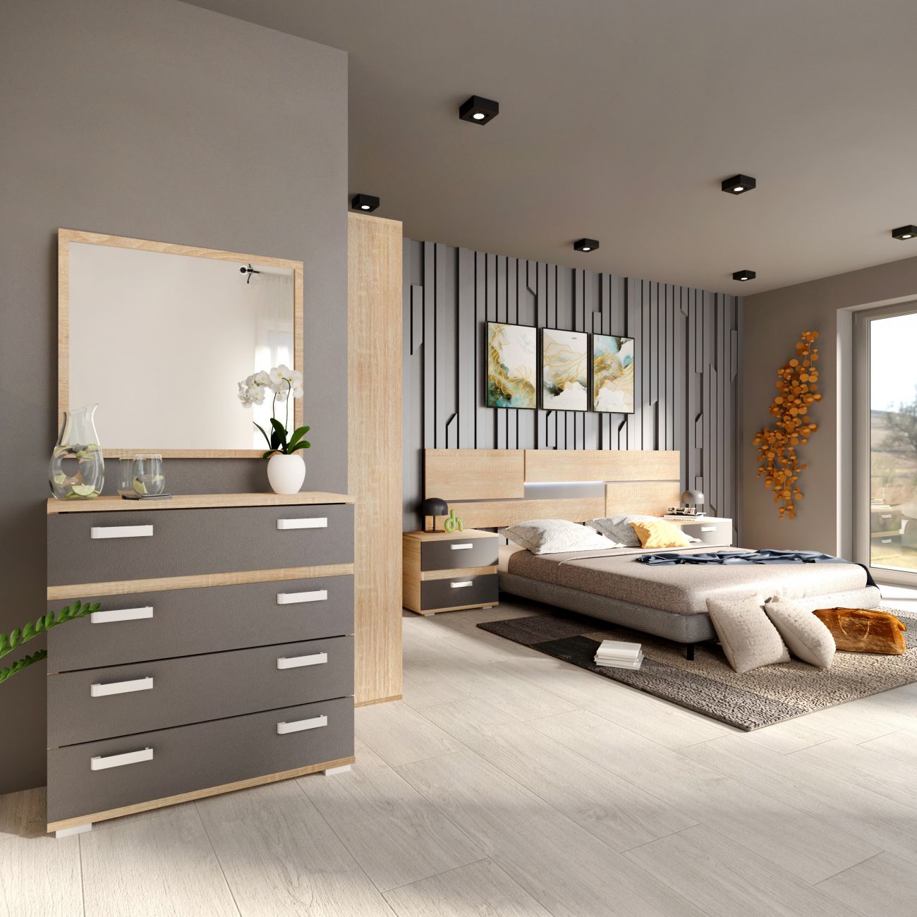 A cómoda Liz é uma cómoda grande com 4 gavetas num estilo nórdico ou moderno. É ideal para quartos duplos ou individuais que necessitem de espaço de arrumação adicional.