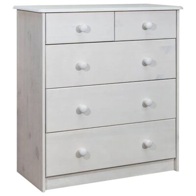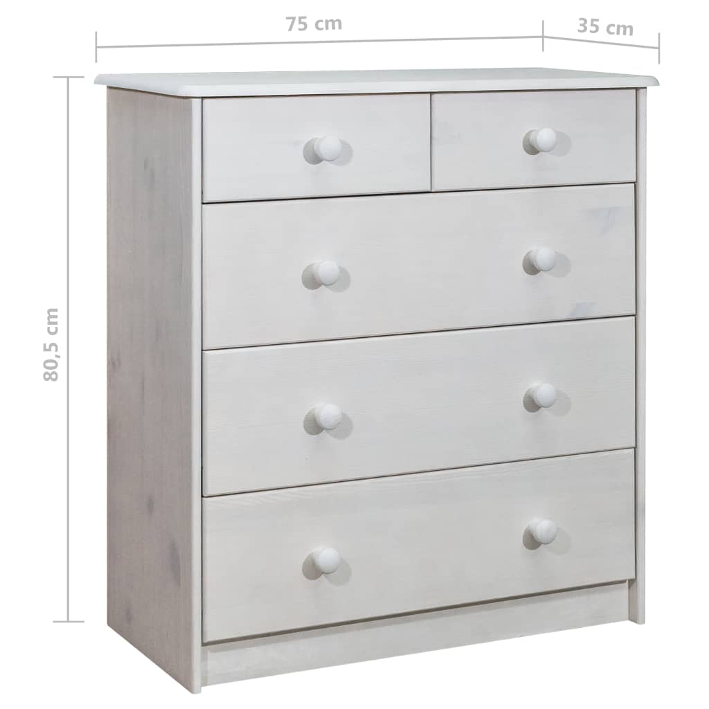 Este aparador em madeira é um complemento decorativo e prático para a sua decoração.Este armário de gavetas é feito em madeira de pinho maciça, tornando-o estável e robusto. O aparador também possui 5 gavetas que deslizam suavemente, proporcionando um amplo espaço de arrumação para manter os seus vários artigos essenciais diários bem organizados e fáceis de alcançar. O tampo resistente é perfeito para expor objetos decorativos, molduras e vasos com plantas.