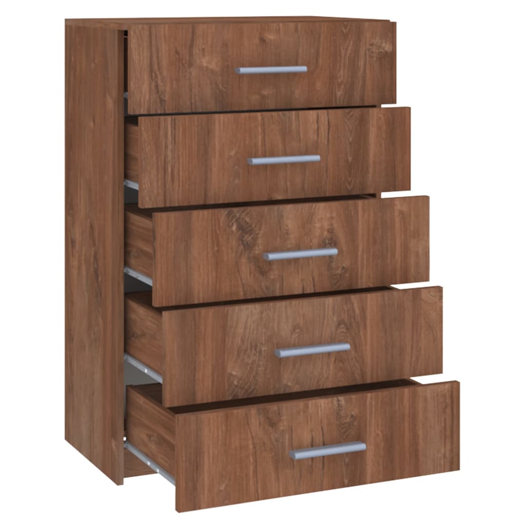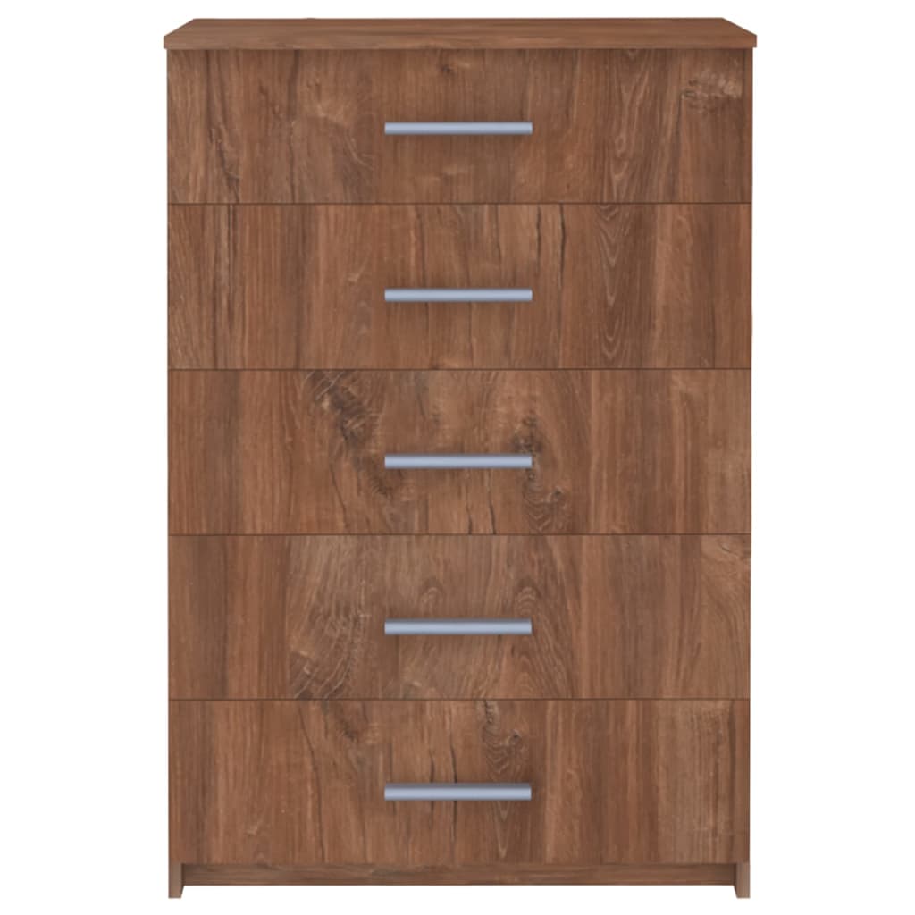 Este móvel com gavetas é feito de aglomerado com cantos reforçados a PVC. As suas 5 gavetas fornecem um amplo espaço de arrumação para os seus vários artigos, tornando a sua divisão arrumada e limpa. Os acessórios de montagem e a âncora de fixação na parede, incluídos na entrega, evitarão que o armário de arrumação tombe. Este armário de arrumação durável é fácil de limpar. A montagem é fácil.