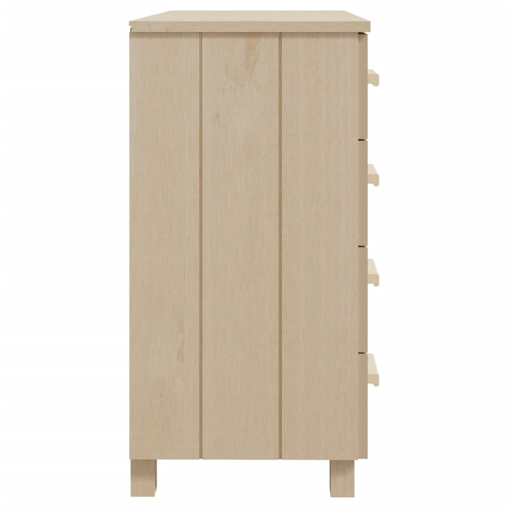 Este aparador em madeira é um complemento decorativo e prático para a sua decoração.Este armário de gavetas é feito em madeira de pinho maciça, tornando-o estável e robusto. O aparador também possui 5 gavetas que deslizam suavemente, proporcionando um amplo espaço de arrumação para manter os seus vários artigos essenciais diários bem organizados e fáceis de alcançar. O tampo resistente é perfeito para expor objetos decorativos, molduras e vasos com plantas.