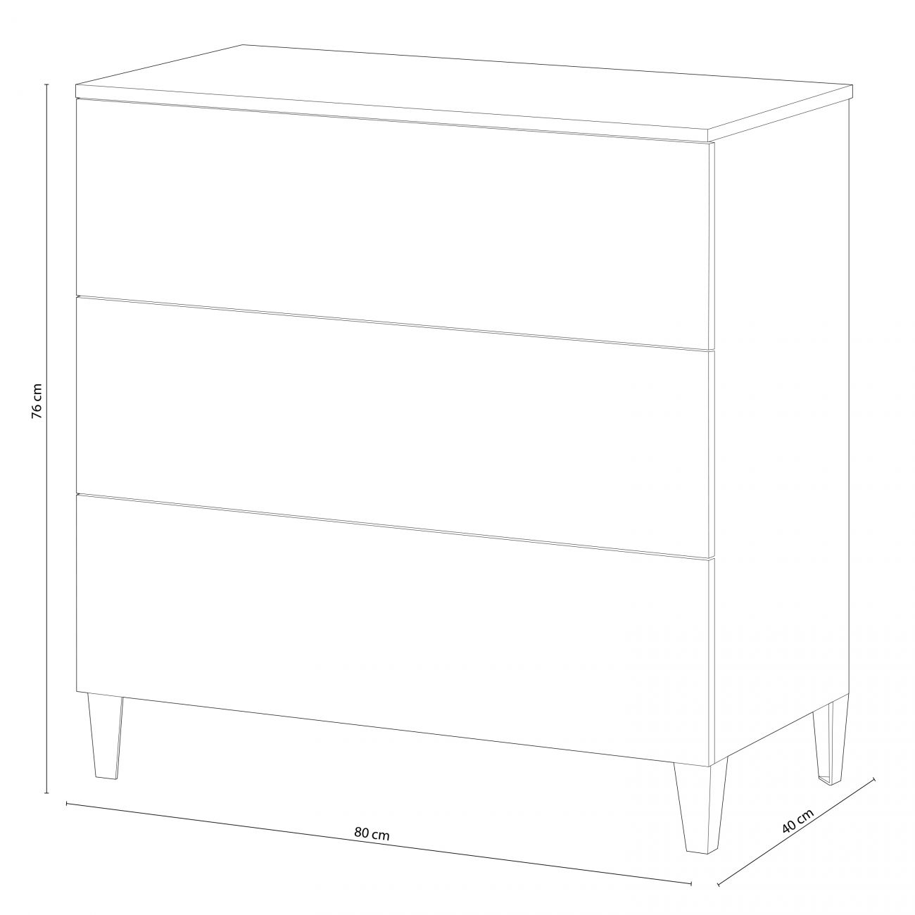 - A cómoda Pira de 3 inclui 3 gavetas sem puxadores, respeitando a simplicidade do design geral da peça, e é fabricada em melamina de alta qualidade com pernas em PVC.
