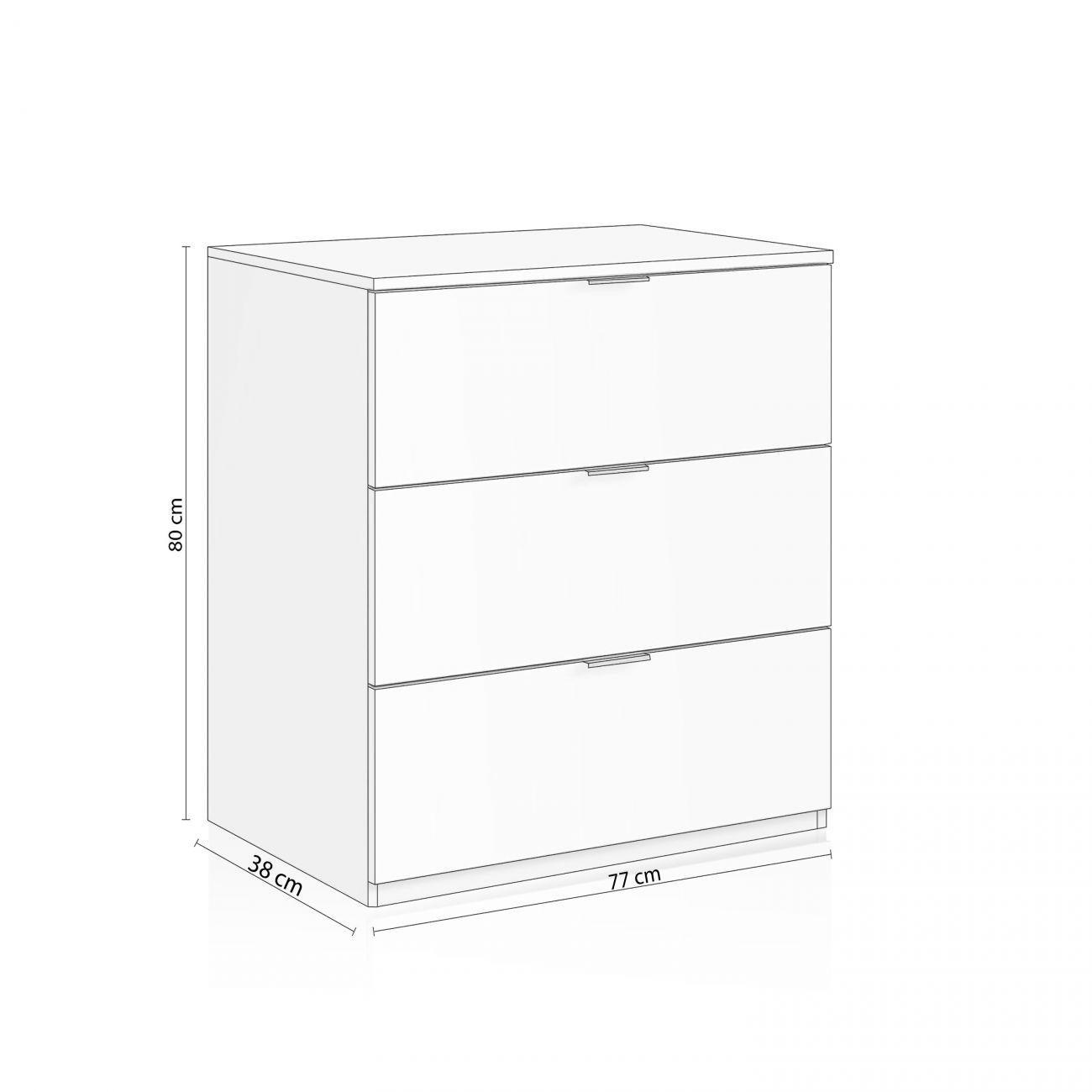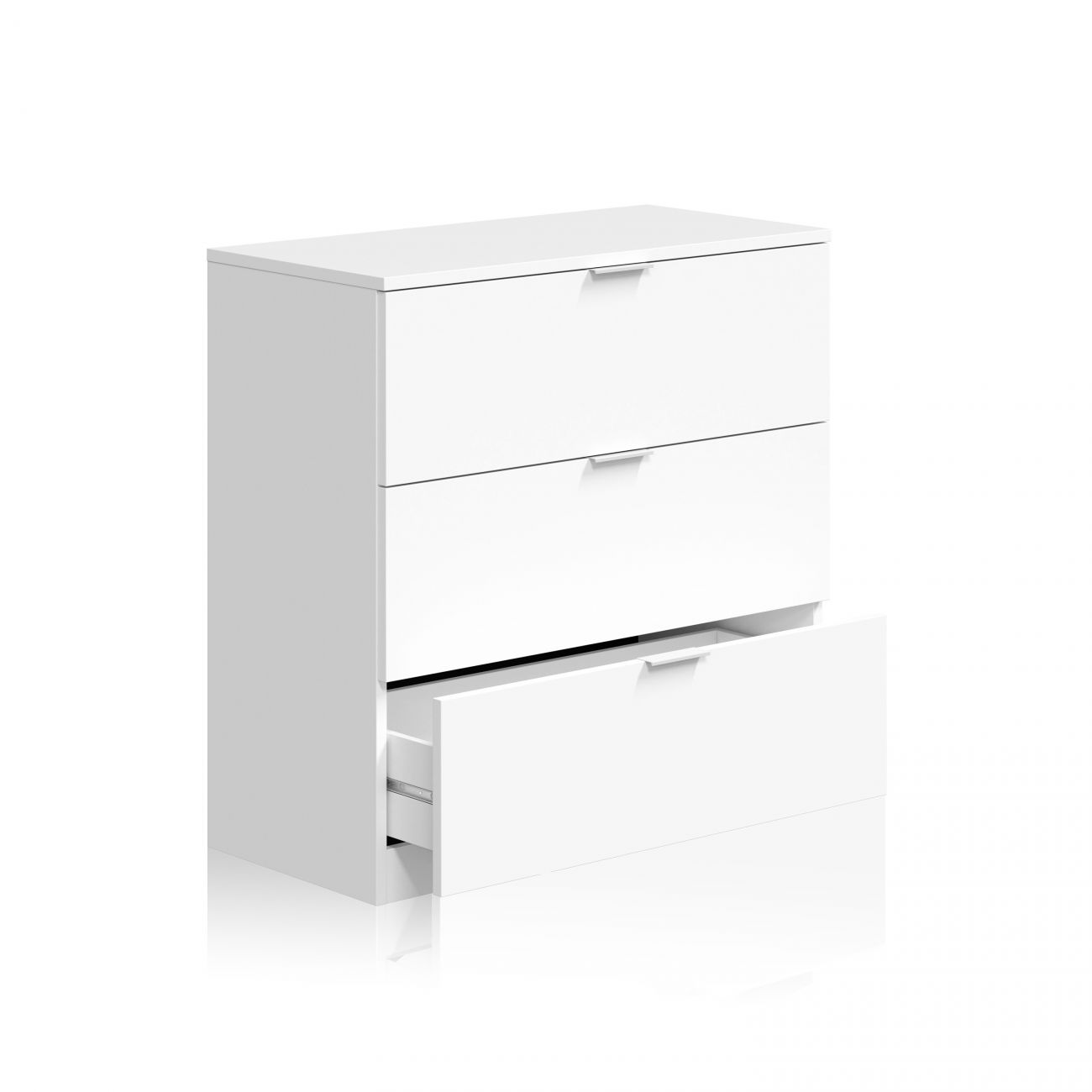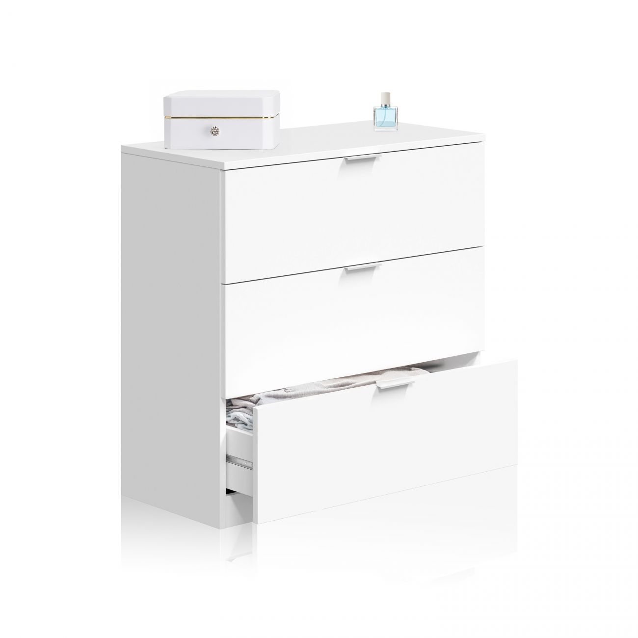 - A estrutura inclui três gavetas grandes com um sistema de guias metálicas deslizantes que permitem uma abertura e um fecho suaves, mesmo com uma utilização intensiva. Este sistema garante estabilidade e resistência ao longo do tempo, mantendo cada compartimento em perfeito estado de funcionamento. Os puxadores discretos e rectangulares integram-se harmoniosamente no conjunto, conferindo um toque de sofisticação.