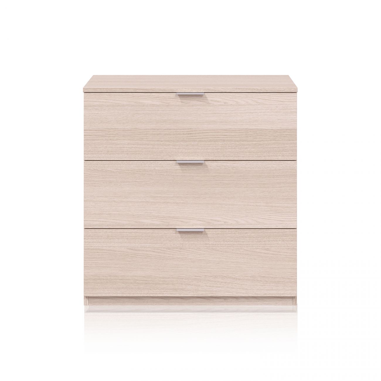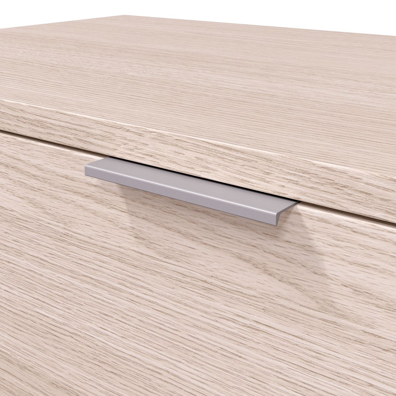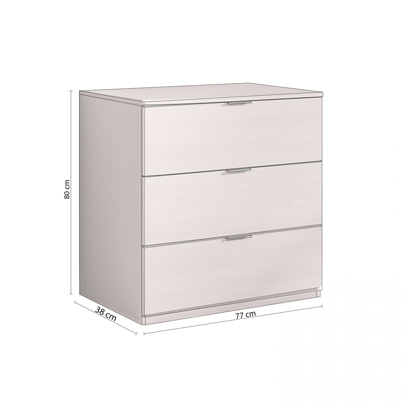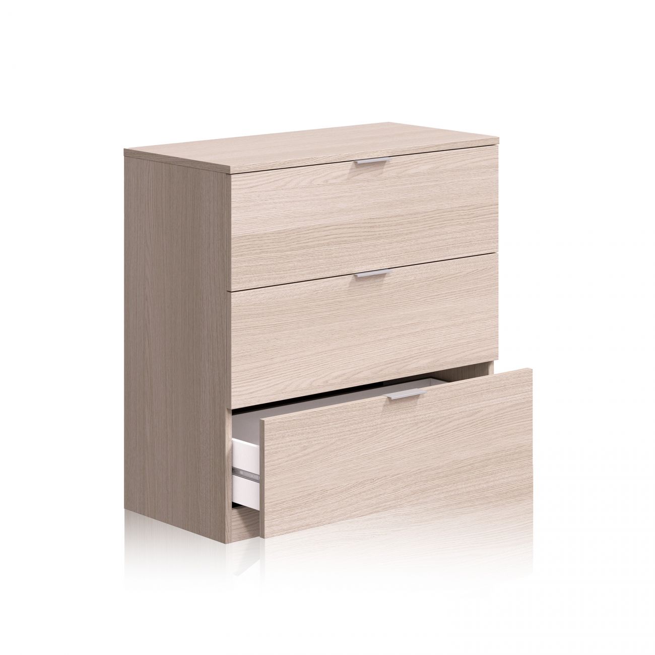 - A estrutura inclui três gavetas grandes com um sistema de guias metálicas deslizantes que permitem uma abertura e um fecho suaves, mesmo com uma utilização intensiva. Este sistema garante estabilidade e resistência ao longo do tempo, mantendo cada compartimento em perfeito estado de funcionamento. Os puxadores discretos e rectangulares integram-se harmoniosamente no conjunto, conferindo um toque de sofisticação.
