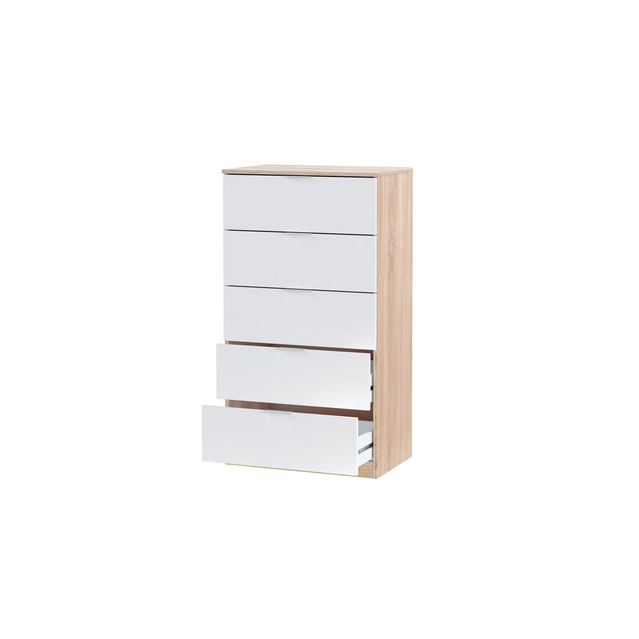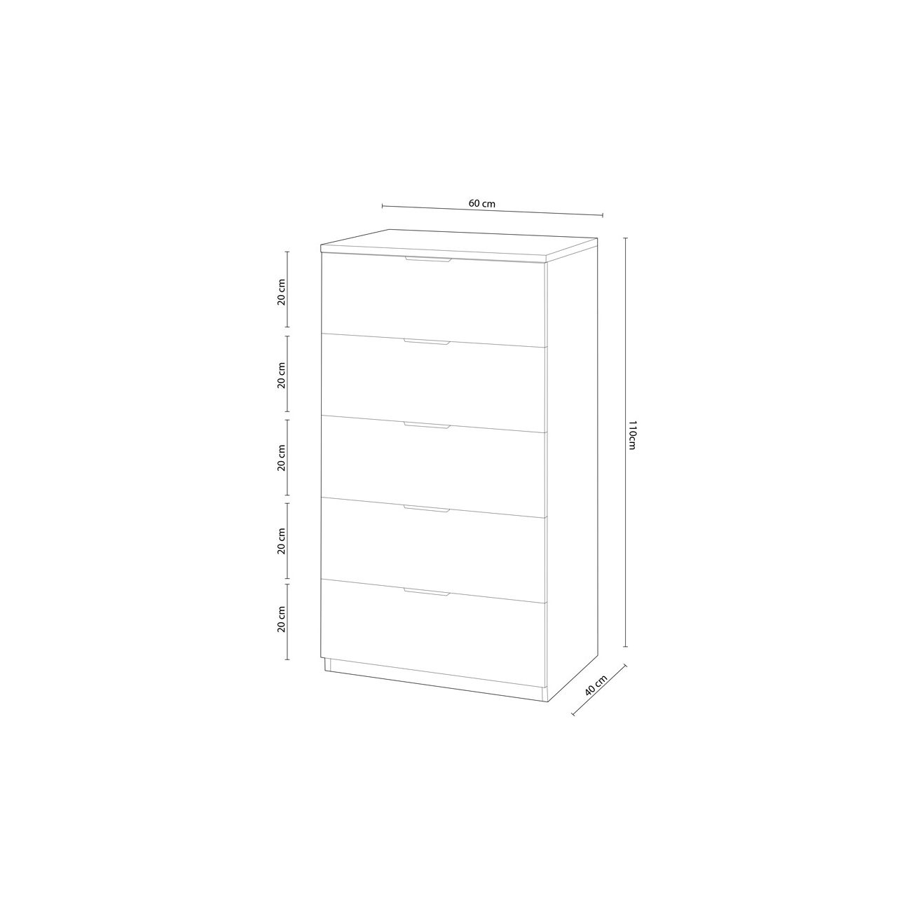 A cómoda Viegas é uma cómoda de 5 gavetas com um estilo nórdico, contemporâneo ou industrial, consoante o modelo. Um grande espaço de arrumação adicional para complementar o seu roupeiro, que também o ajudará a decorar o seu quarto.