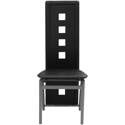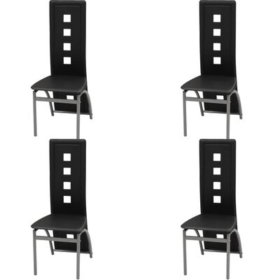 A estrutura de aço com revestimento em pó fornece bastante apoio para a mesa, enquanto o tampo de vidro, com uma borda preta, é feito de vidro temperado de alta resistência e é fácil de limpar. As cadeiras deslumbrantes são contemporâneas, mas intemporais. Graças ao seu design ergonómico, são altamente confortáveis e a sua estrutura de aço sólido torna-as muito estáveis e duráveis. A montagem é muito fácil.