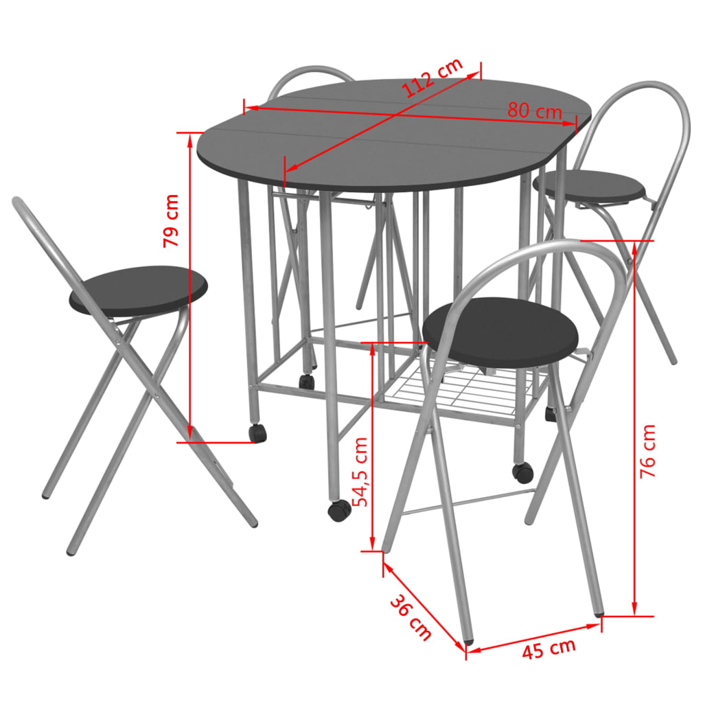 O nosso elegante conjunto de jantar dobrável MDF será o ponto focal da sua cozinha!As estruturas de ferro revestidas a pó tornam a mesa e as cadeiras fortes e robustas e graças à sua construção leve, todos os artigos são fáceis de mover. Feito de MDF de alta qualidade, o conjunto de refeições é durável e fácil de limpar. Graças ao design dobrável, as cadeiras podem ser guardadas debaixo da mesa dobrável para economizar espaço de armazenamento quando não estiverem a ser utilizadas, tornando o conjunto ideal para cozinhas e salas de jantar pequenas.A mesa está equipada com rodas que possuem travões, facilitando o armazenamento e o transporte.