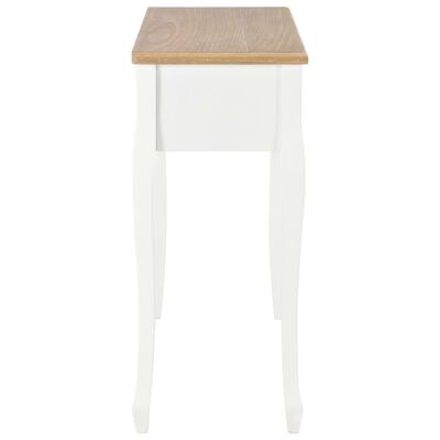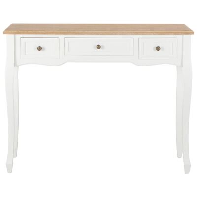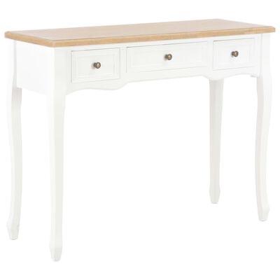 A mesa apresenta um excelente acabamento combinado com uma ótima funcionalidade. Graças ao seu design compacto, a nossa mesa consola ocupa pouco espaço e cabe em áreas pequenas. Três gavetas de deslize suave oferecem-lhe espaço adicional para os seus ornamentos, cosméticos e outros pertences particulares.