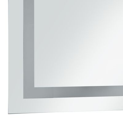 O nosso espelho LED para casa de banho oferece iluminação luminosa combinada com um estilo sofisticado e design funcional. Este espelho emite luz através das arestas circundantes, criando um ambiente atmosférico na sua casa de banho. Com os LED economizadores de energia poderá ver-se ao espelho com precisão e com uma iluminação muito mais verdadeira, para poder aplicar a maquilhagem e tratar da sua higiene e cuidados com a pele. Pode facilmente ligar/desligar a luz com o interruptor com sensor tátil. Também foi testado para IP44 de forma a garantir uma total segurança num ambiente húmido.