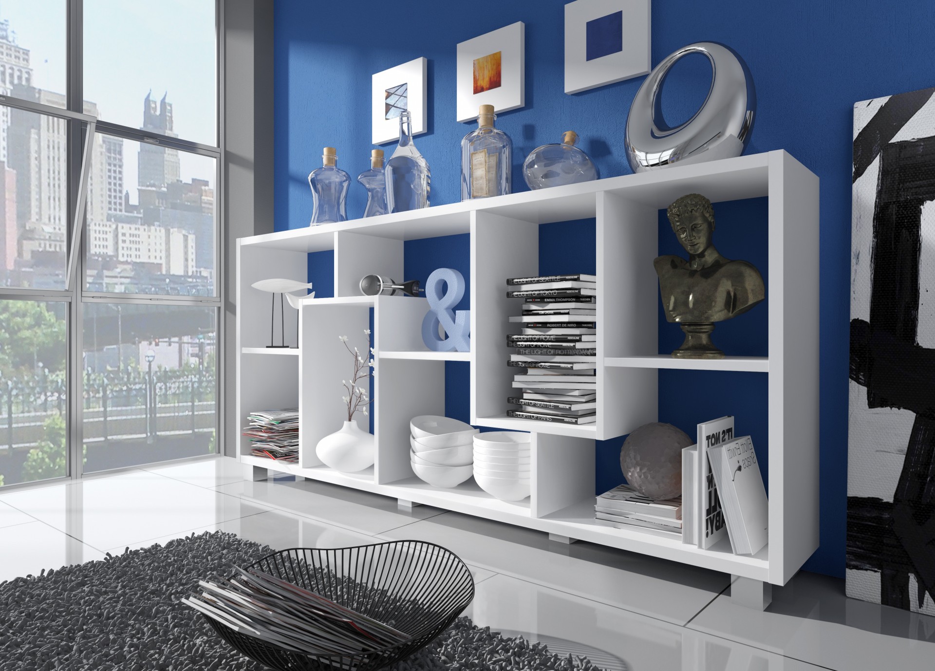 - É uma magnífica estante concebida para a sala de estar/jantar, que impressiona pelo seu design e pela sua capacidade de ser montada tanto na vertical como na horizontal.