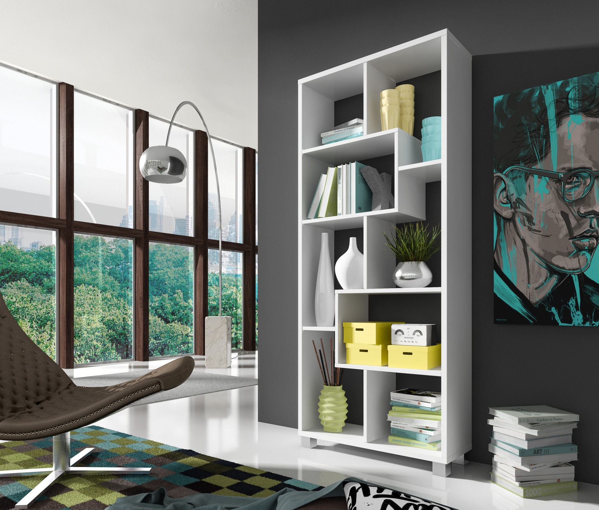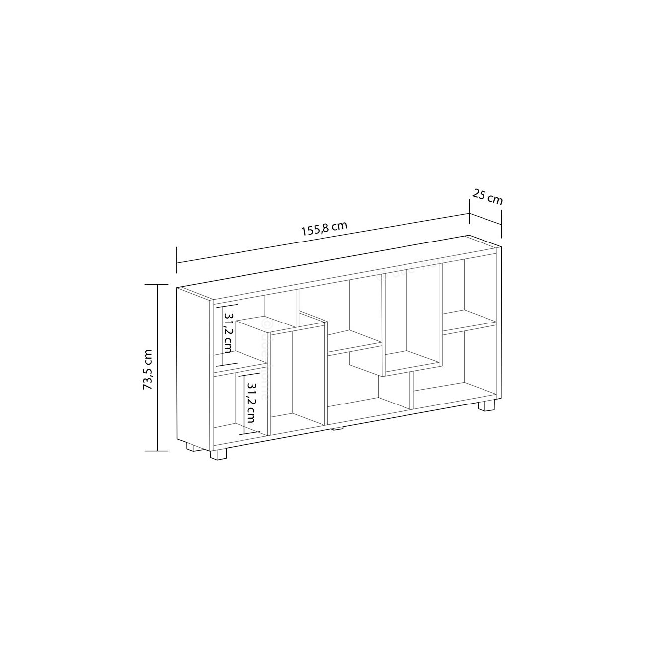 - Inclui 5 pés que podem ser dispostos como desejar, transformando assim a estante Deluxe num móvel orientado na horizontal ou na vertical. Em ambos os casos, os diferentes espaços de arrumação foram dimensionados para acolher todo o tipo de acessórios, como molduras, vasos, livros e revistas.