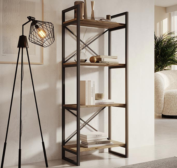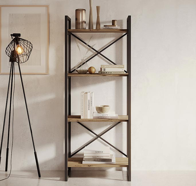 - Prateleiras em painel de melamina na cor pinho Atlântico, 18 mm de espessura