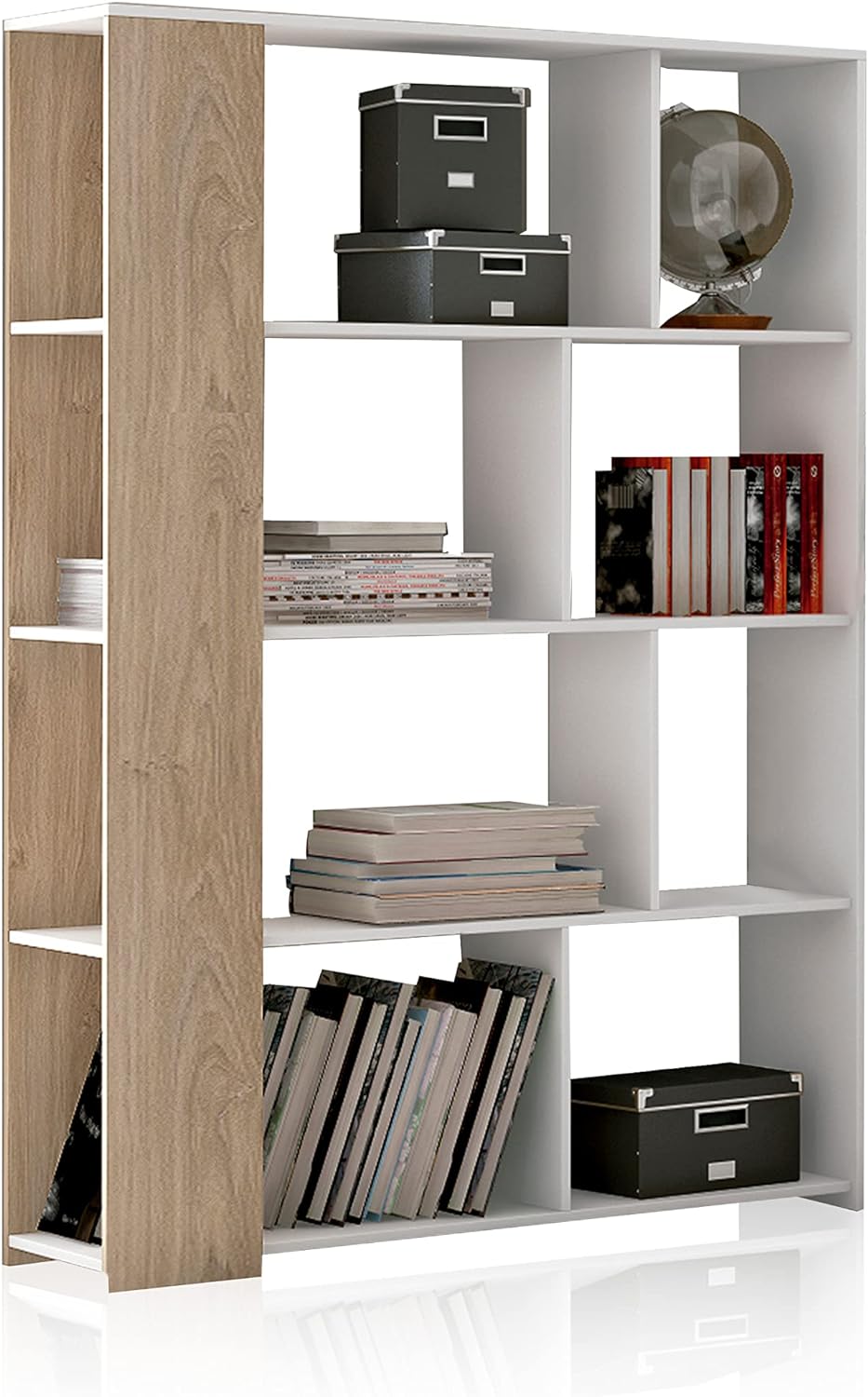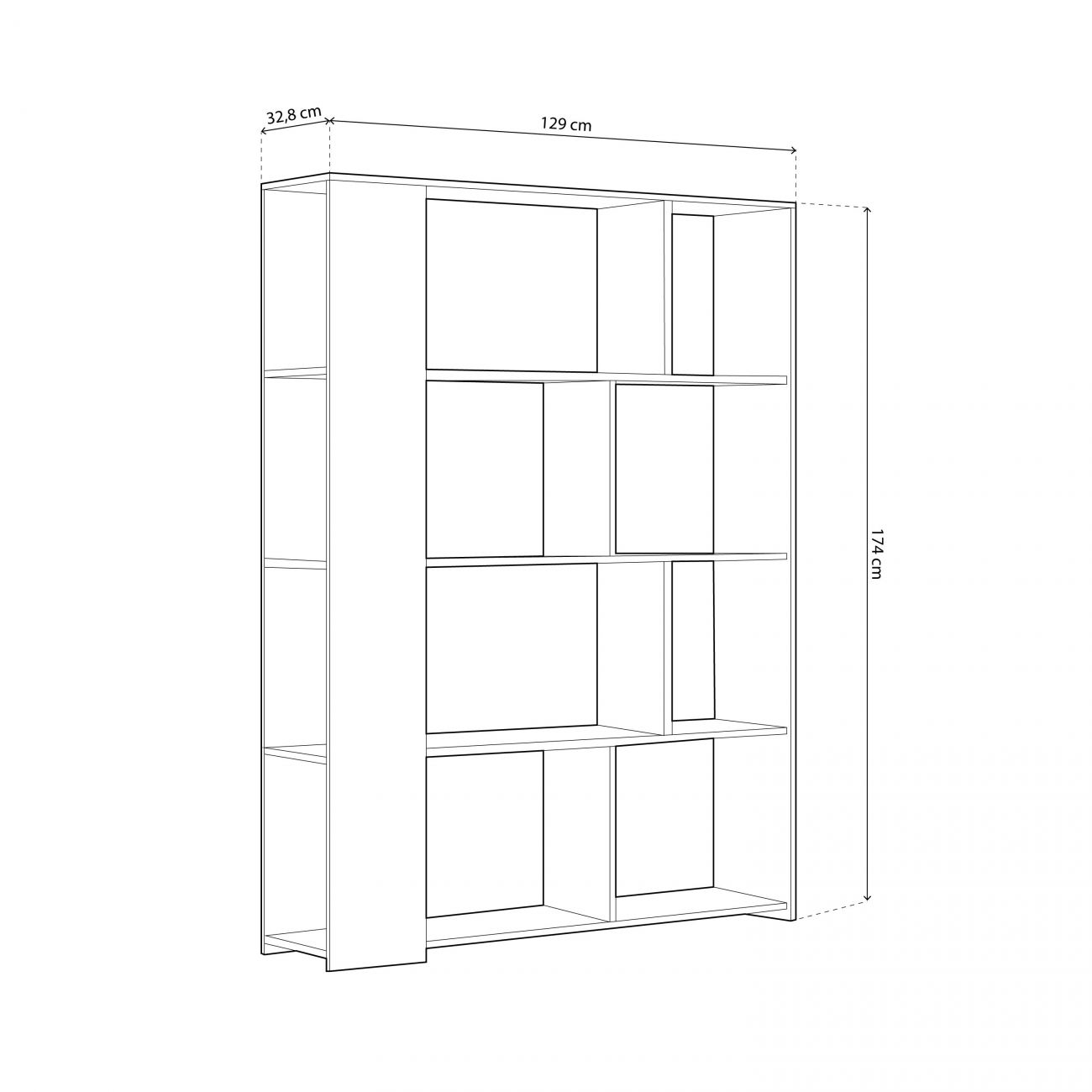• Com um total de 8 espaços de arrumação, terá uma prateleira ideal para decorar a sua sala de jantar ou sala de estar, com uma prateleira que dará um toque moderno e nórdico à sua sala de estar graças à sua gama cromática. As suas medidas são: 129 cm (comprimento) x 174 cm (altura) x 32,8 cm (profundidade).