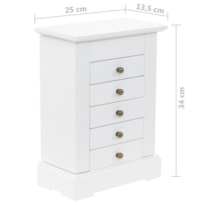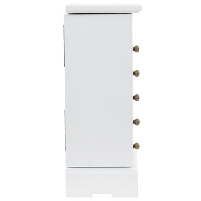 Este guarda-joias será um complemento perfeito para a decoração do seu quarto, graças ao seu design elegante e acabamento em branco limpo. A nossa caixa para joias manterá a sua apreciada joalharia organizada, fácil de alcançar e protegida contra pós e manchas.