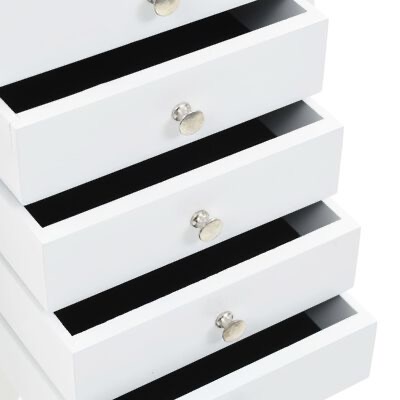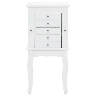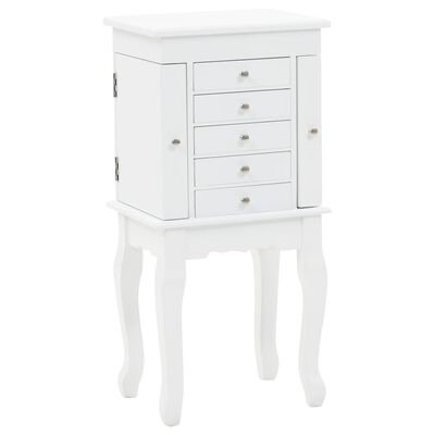 Esta caixa para joias requintada foi fabricada a partir de painéis de fibra de média densidade (MDF) e as suas quatro pernas foram feitas em madeira de pinho, tornando-a resistente e durável. O armário é fácil de limpar e cuidar.